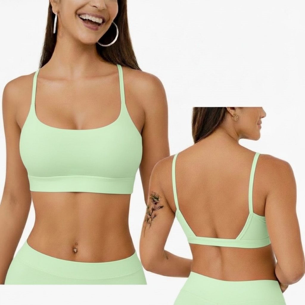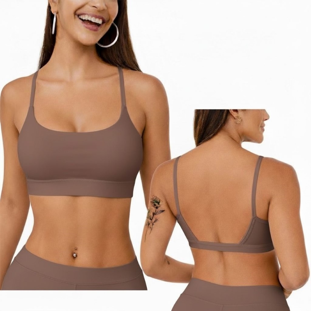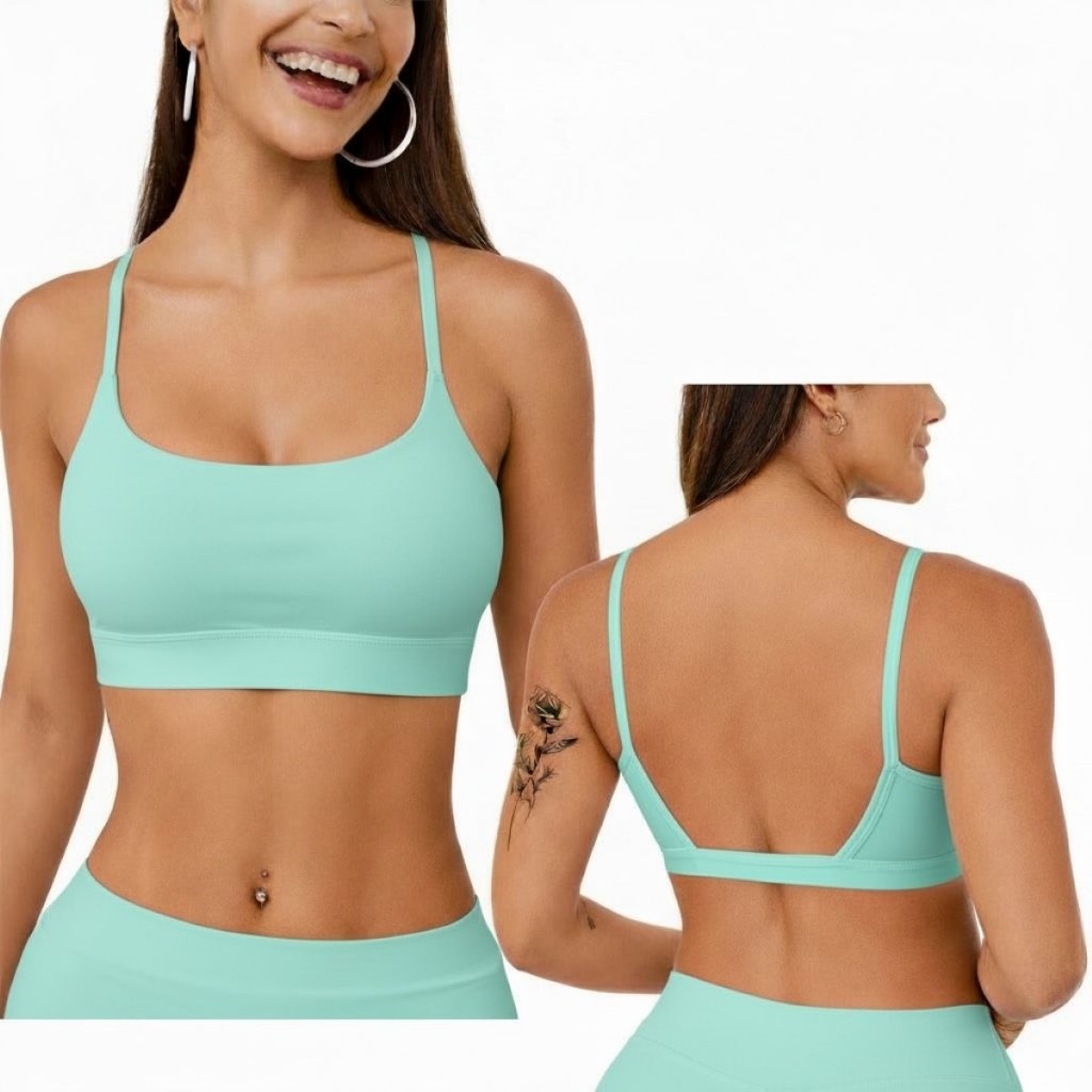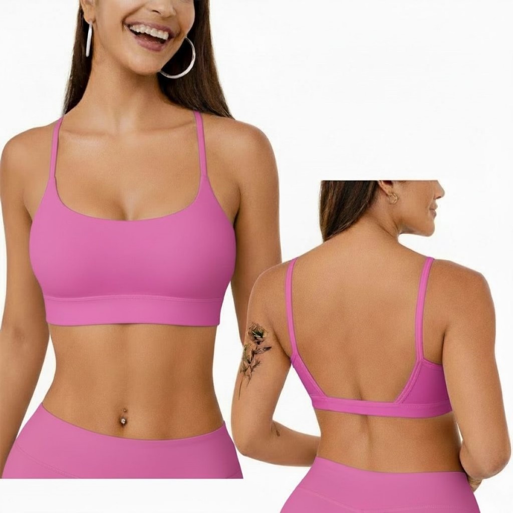 Top Academia Feminino Alça Fina Costas Aberta Bojo Removivel 100% poliamida Fitness Yoga Pilates