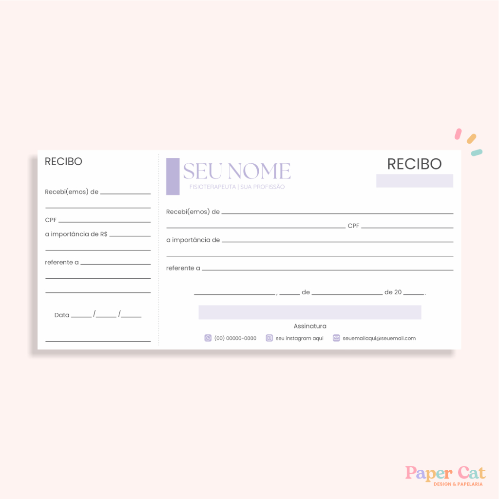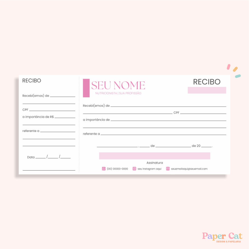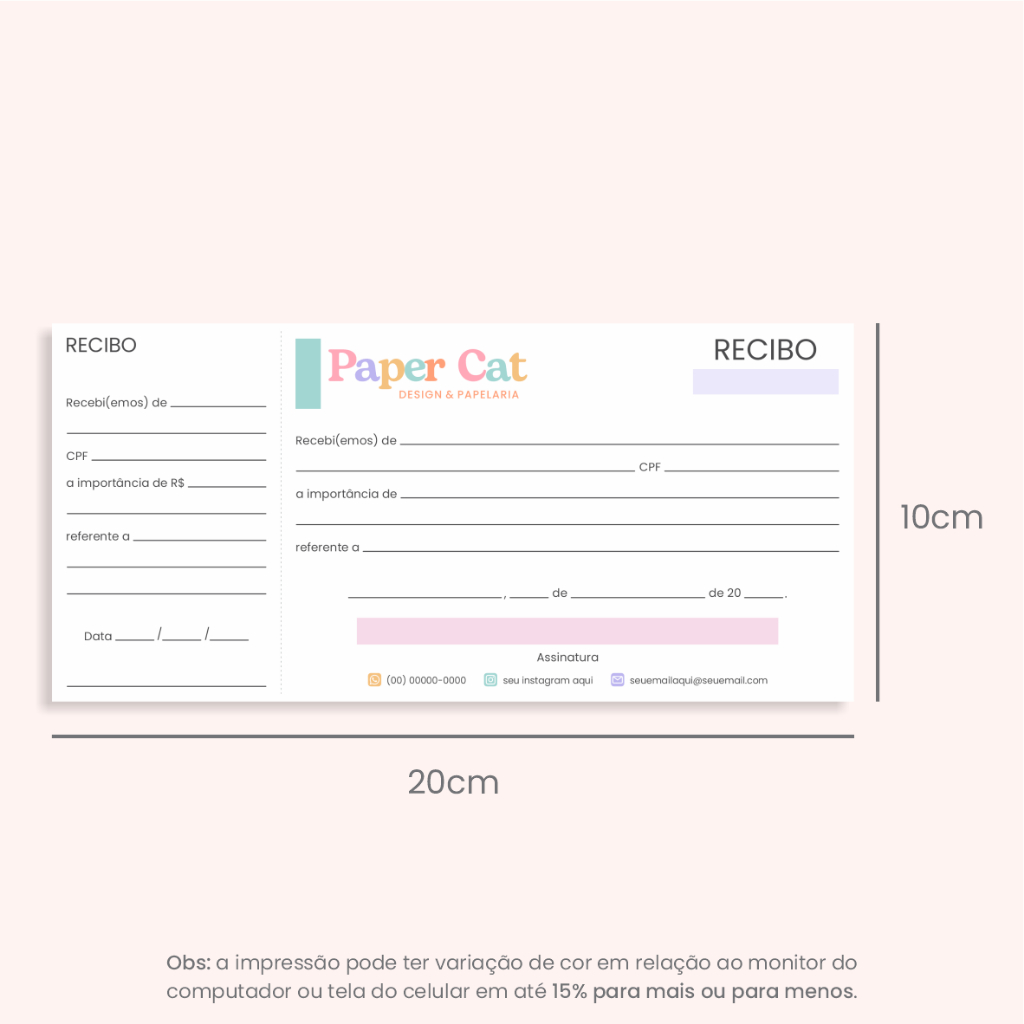 Recibo Personalizado | Tamanho 21x10cm