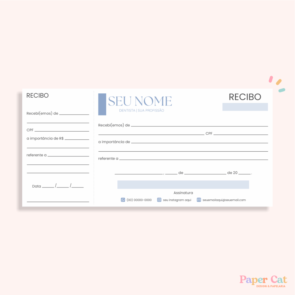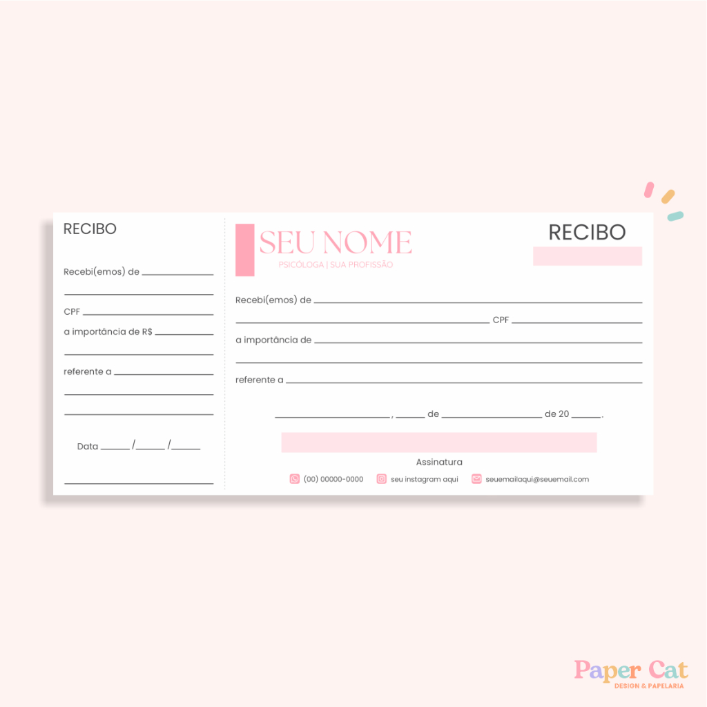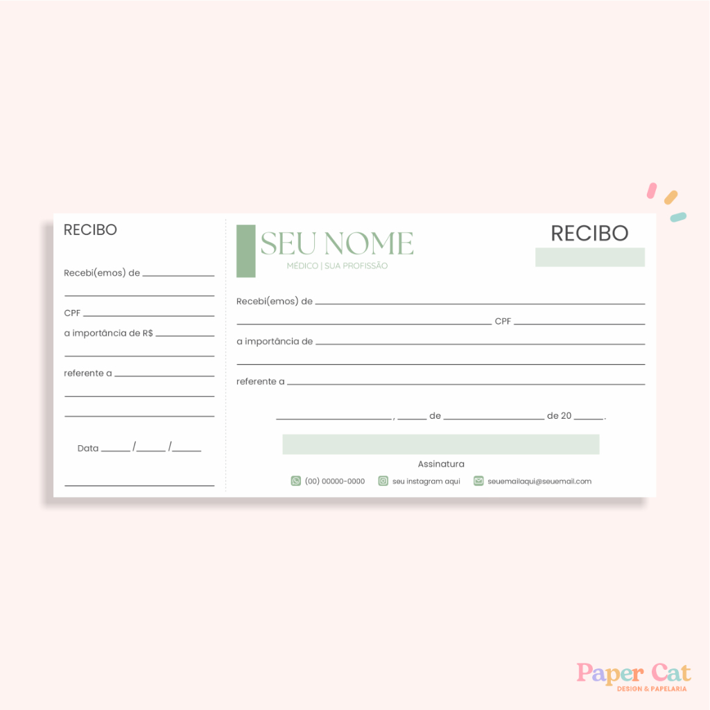 Recibo Personalizado | Tamanho 21x10cm