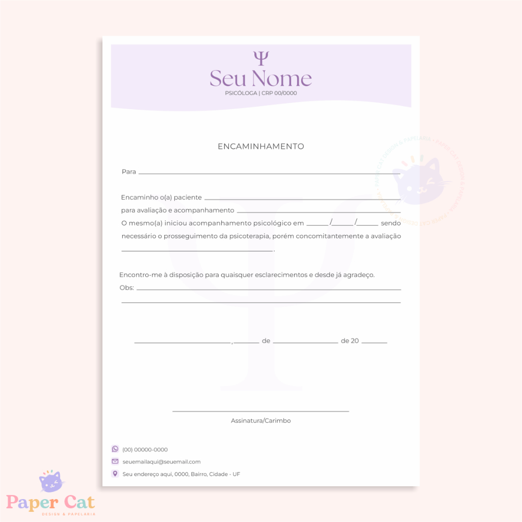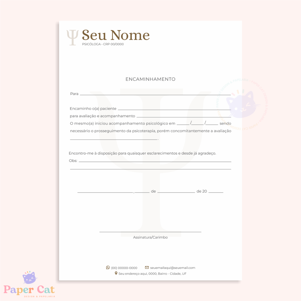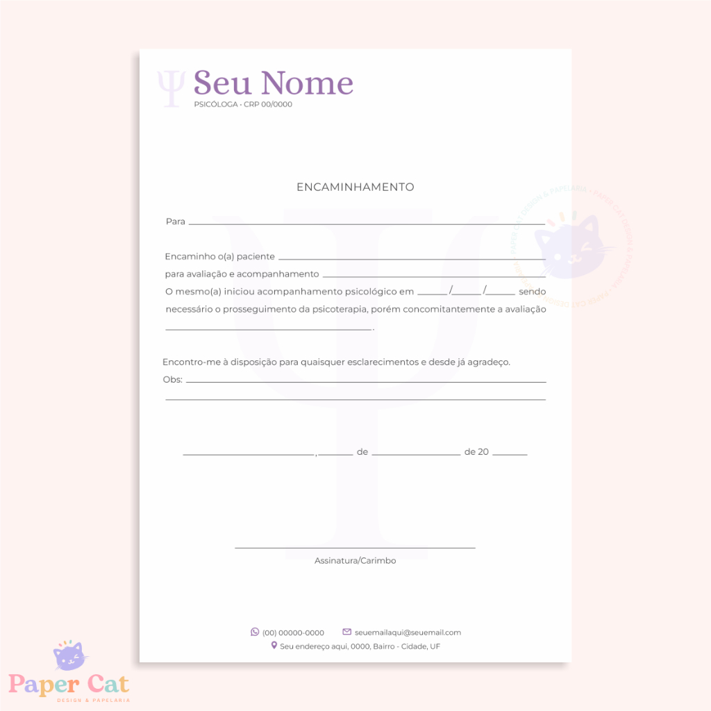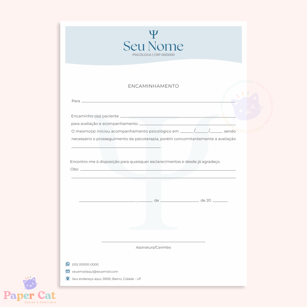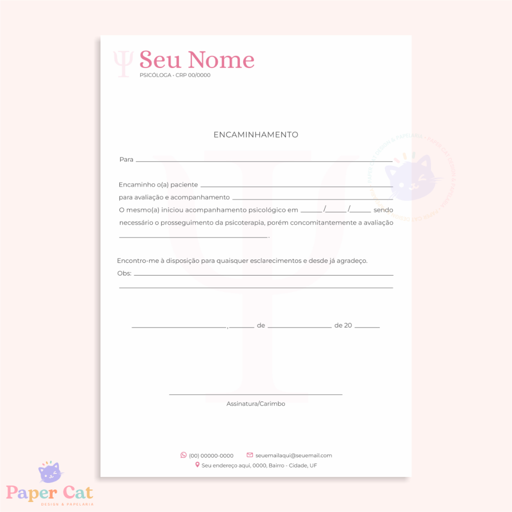 Bloco Encaminhamento | Psicologia | Personalizado | Tamanho A5 | 50 Folhas