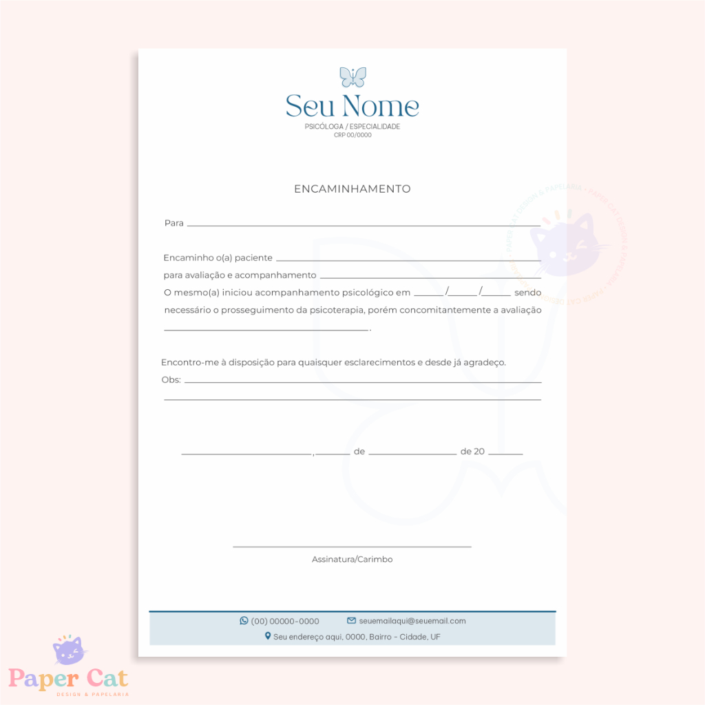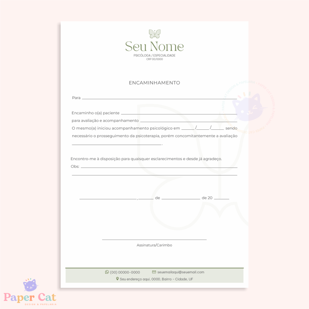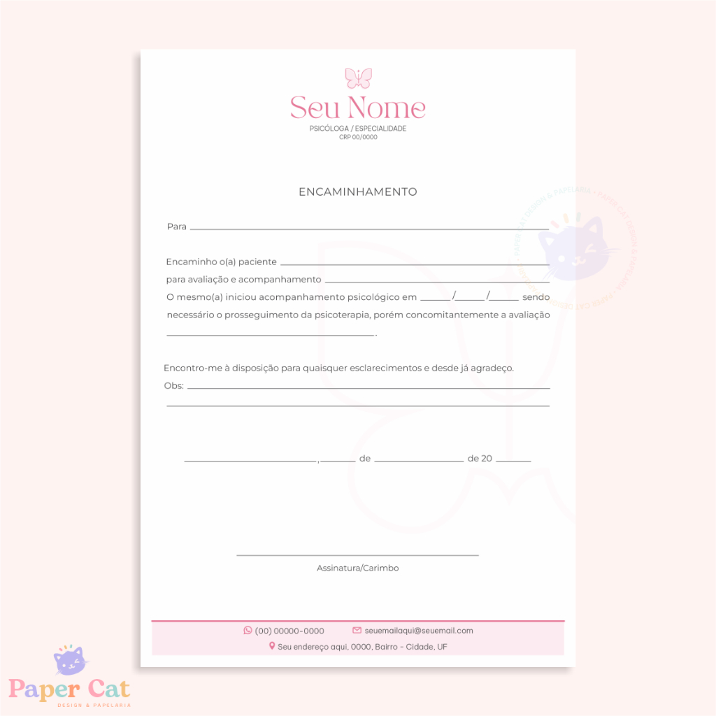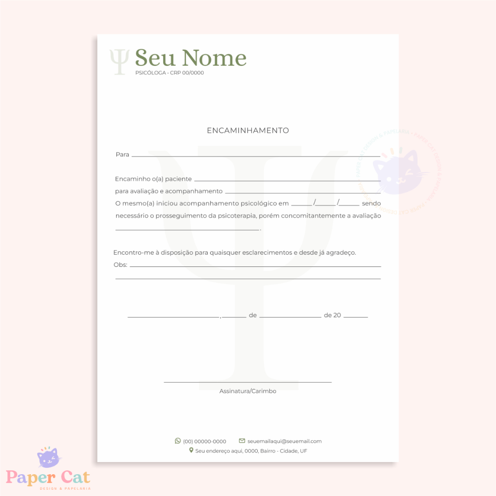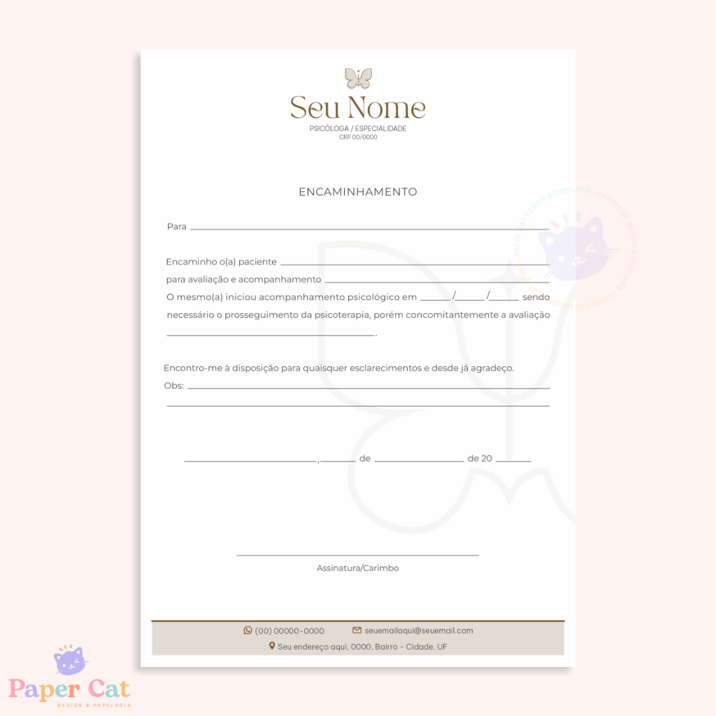 Bloco Encaminhamento | Psicologia | Personalizado | Tamanho A5 | 50 Folhas