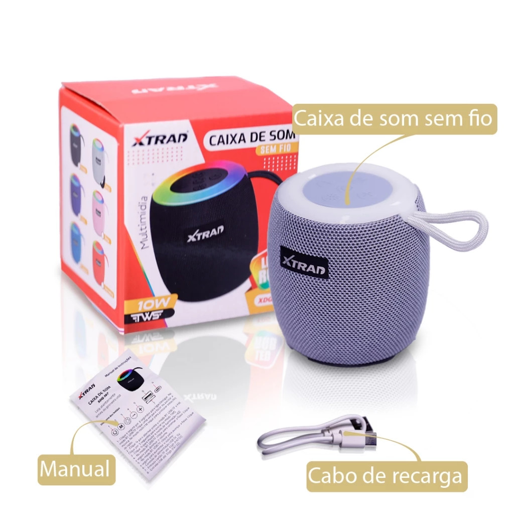 Caixa De Som Bluetooth Potente RGB Xtrad XDG-197 10W TWS SD FM USB Envio Imediato Original