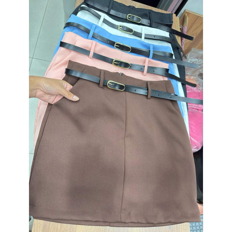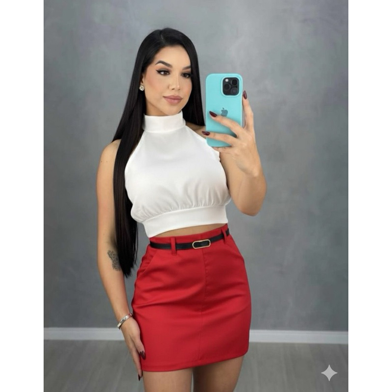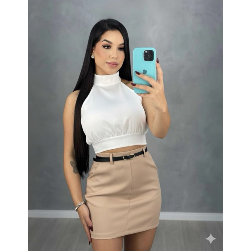 SAIA CURTO COM BOLSO ZIPER NAS COSTAS TECIDO ALFAIATERIA