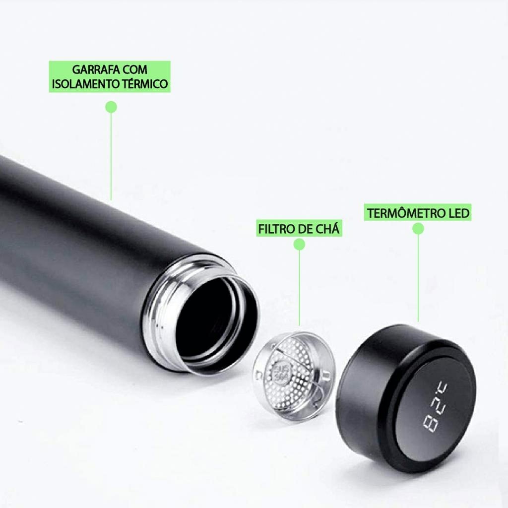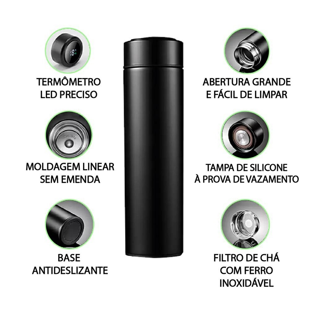 Garrafa Térmica Aço Inox Termômetro Display Digital 500ml