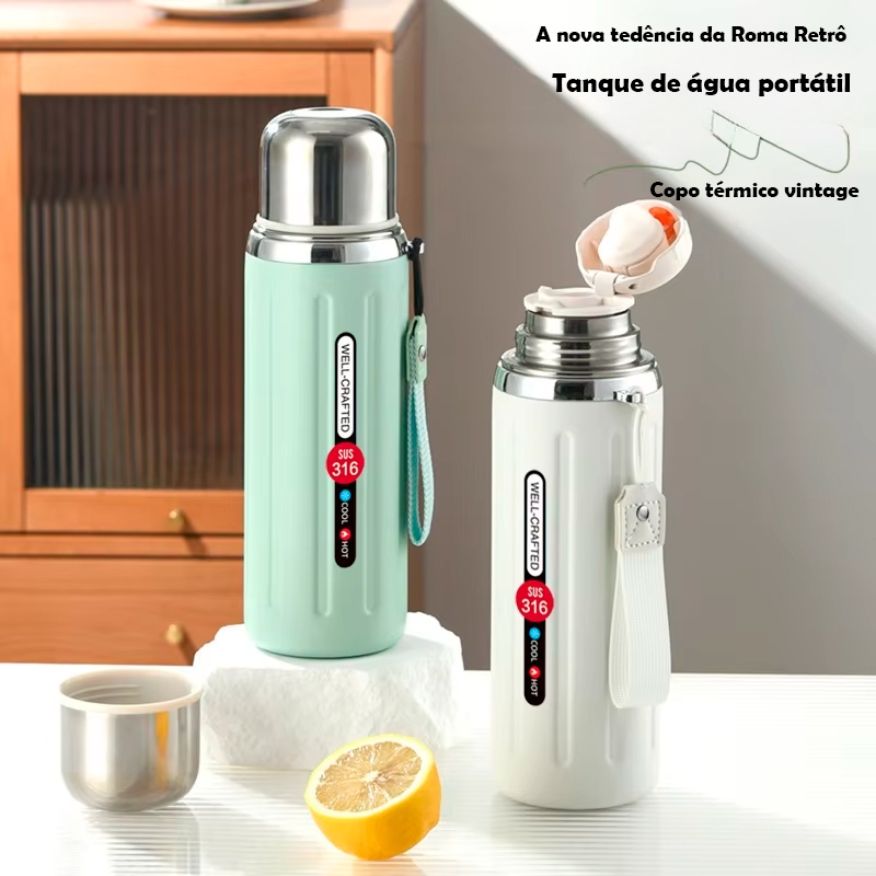 Garrafa Térmica Inox 600ml/800ml com Alça – Conserva Quente ou Frio, Design Moderno e Cores Lindas!