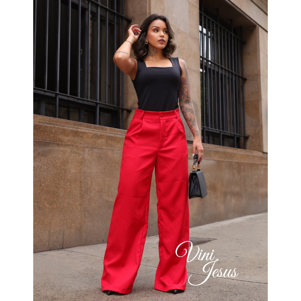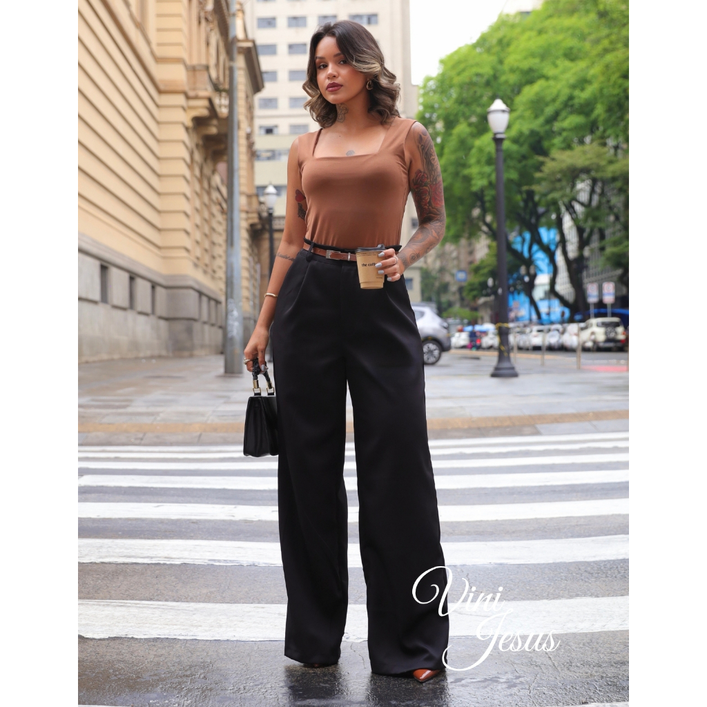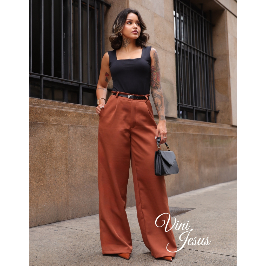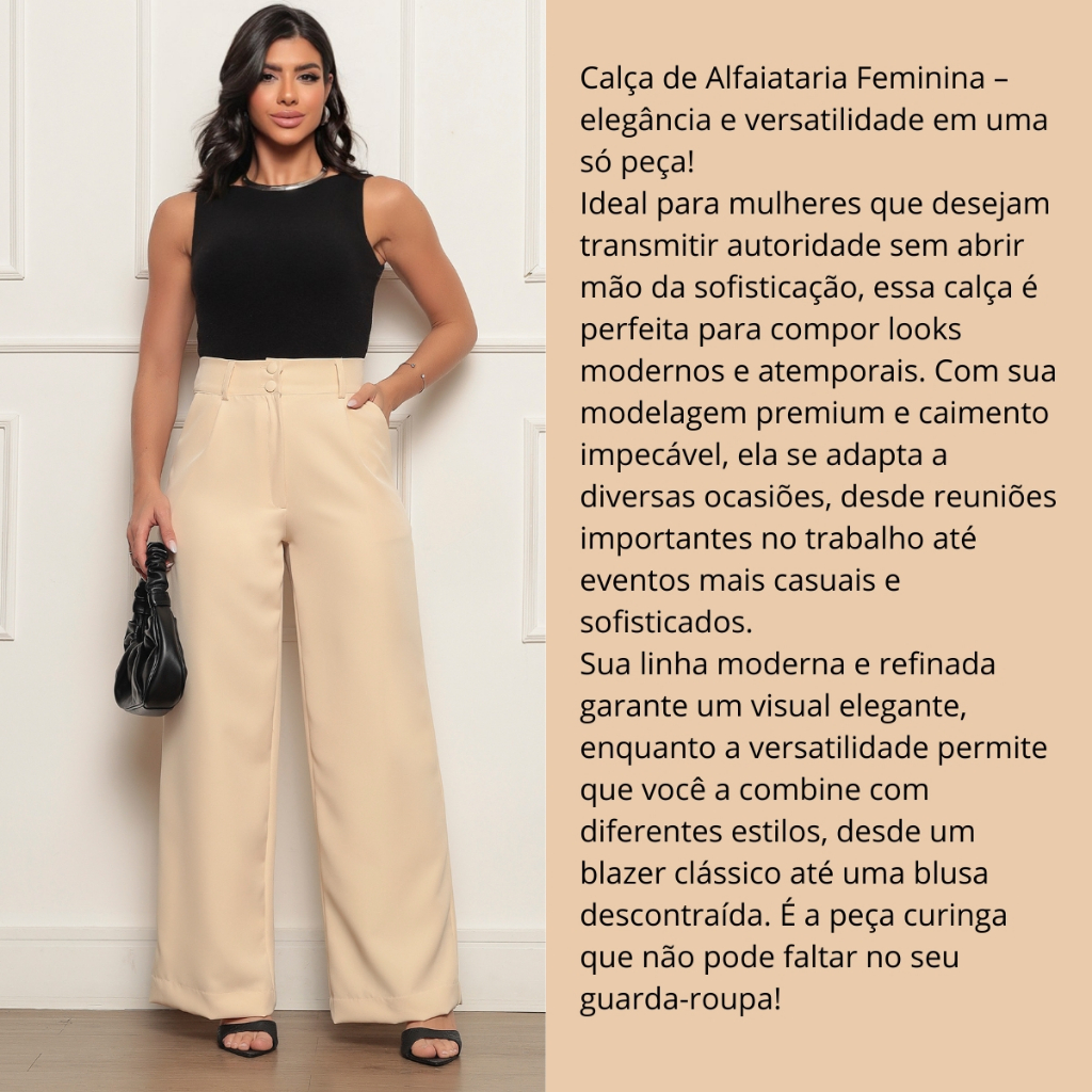 Calça Alfaiataria Feminina Wide Leg Versatil Linha Premium Uso Social Ou Casual