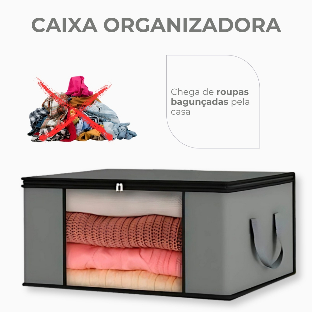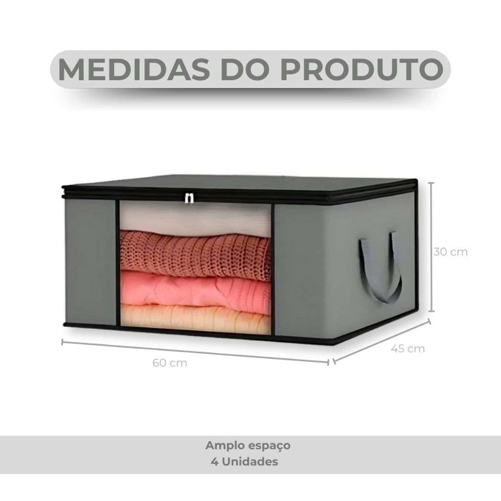 Kit 4 Caixas Organizadora TNT Multiuso Edredom King Travesseiros Roupa Cama Anti Mofo 60x45x30 G