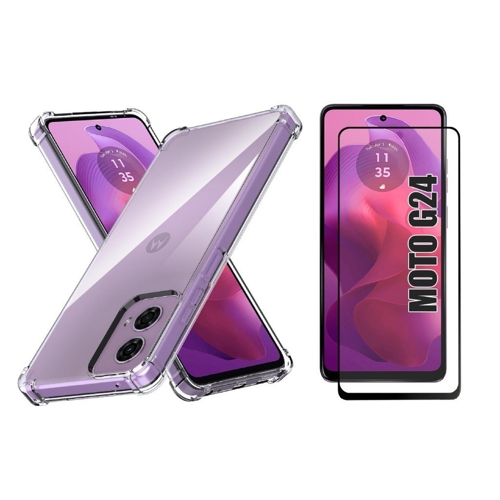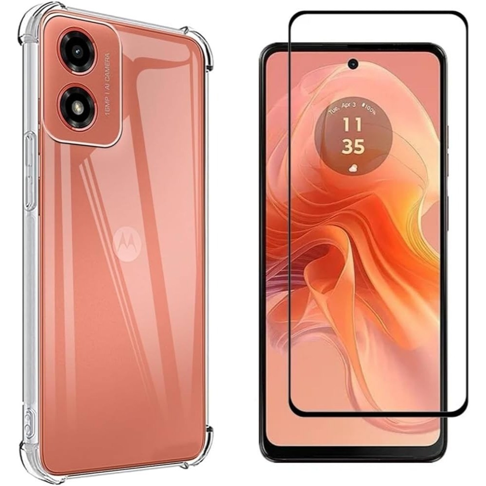 Kit Capa Anti Impacto Transparente + Película 3D P/ Moto G04/G24