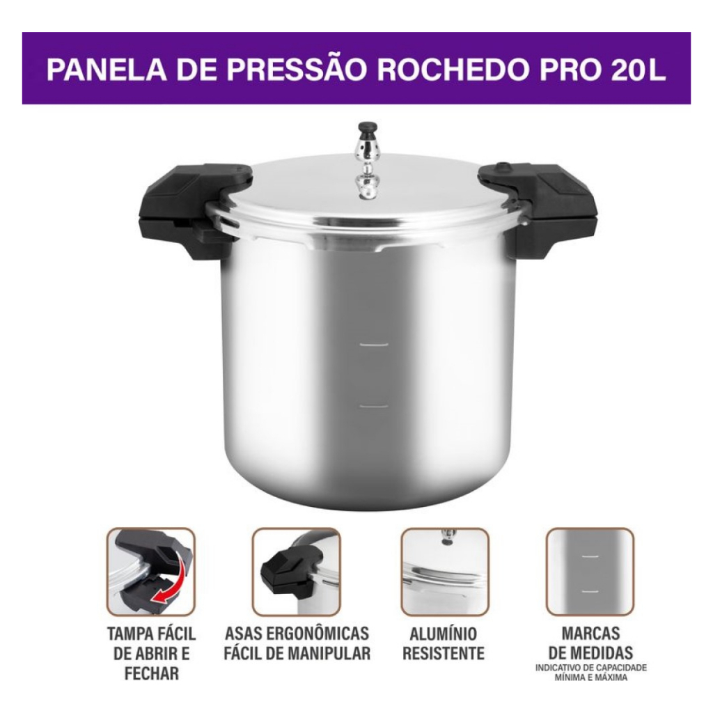 PANELA DE PRESSÃO ALTA CAPACIDADE 20 LITROS ROCHEDO