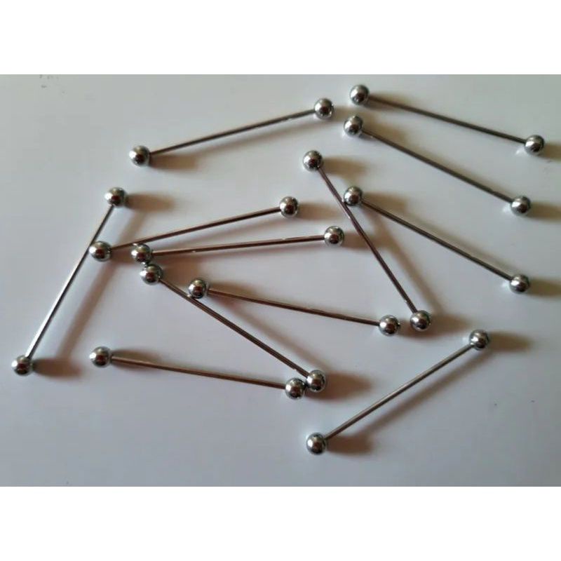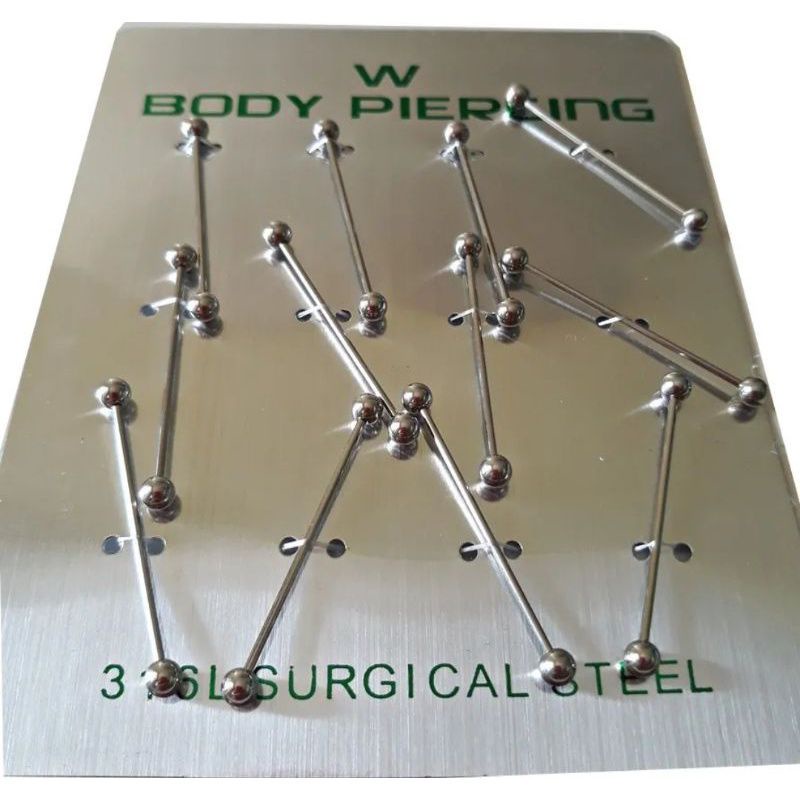 kit 12 peca de Cartela de piercing transversal bolinha unissex 12 unidades aço inox