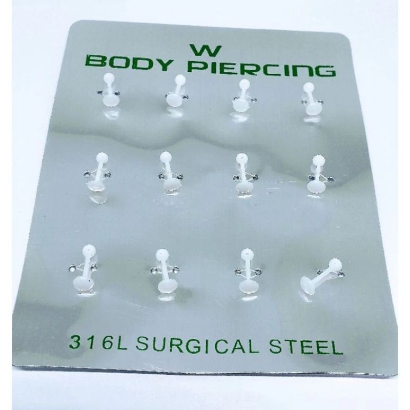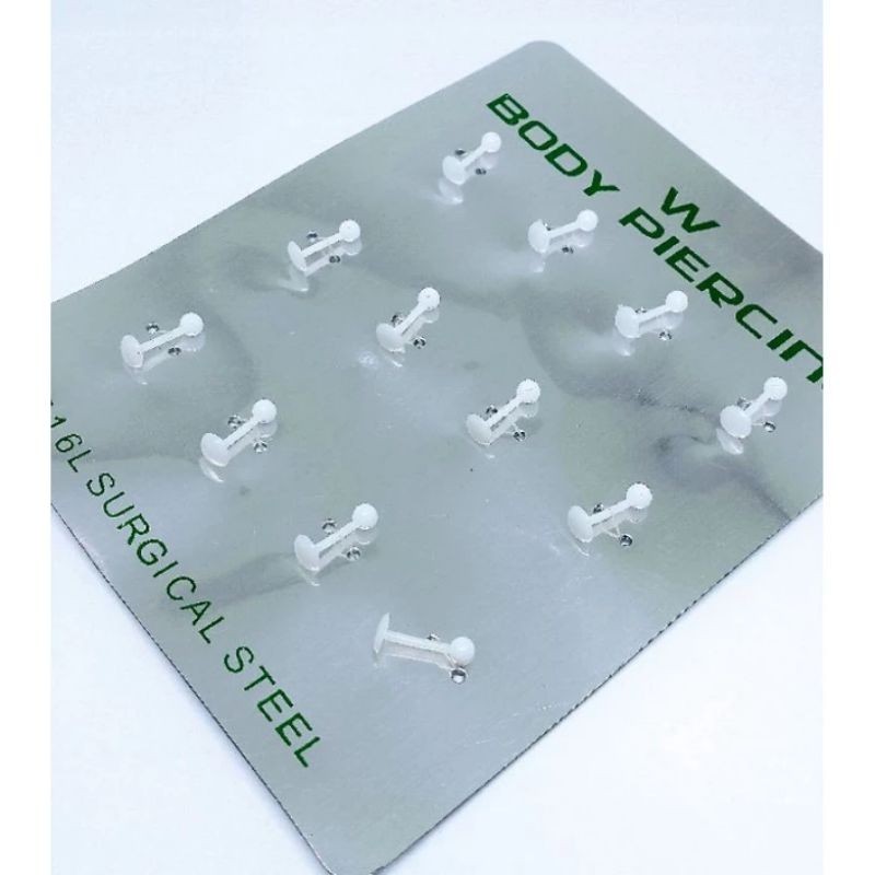 Kit 12 Unidades Cartela de Piercing Labret Tragus Queixo Branco Silicone