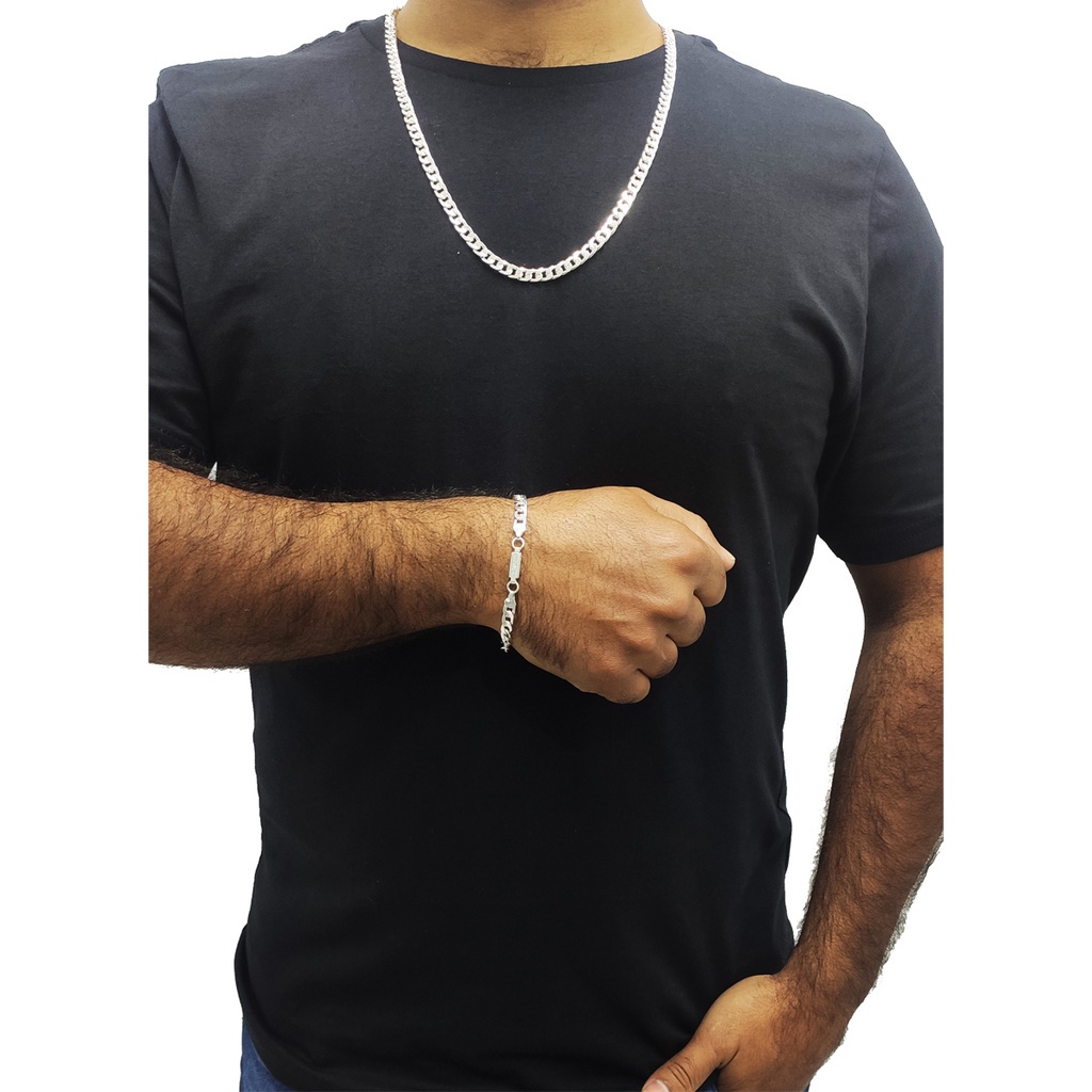 Kit Corrente Cordão de 60cm Tipo Grumet Escama Com Pulseira Grumet banhado 925