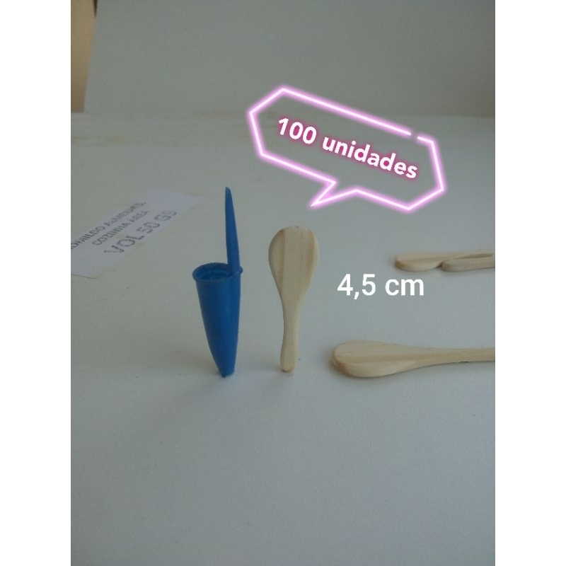 Mini colher de madeira 4,5 cm - 100 unidades - ideal para potes - geleiras - doces - brigadeiros - lembrancinhas - cosméticos - chás - festas - enfeites - decorações - brindes.