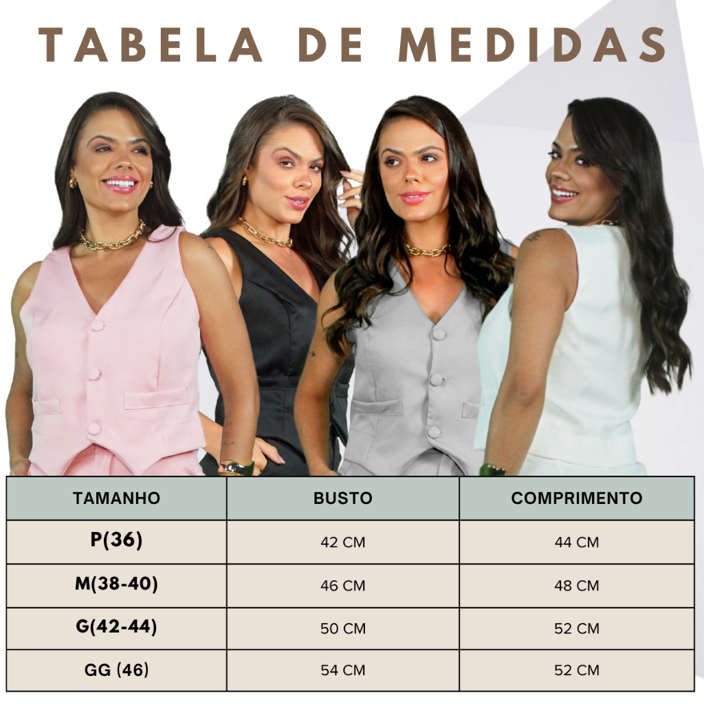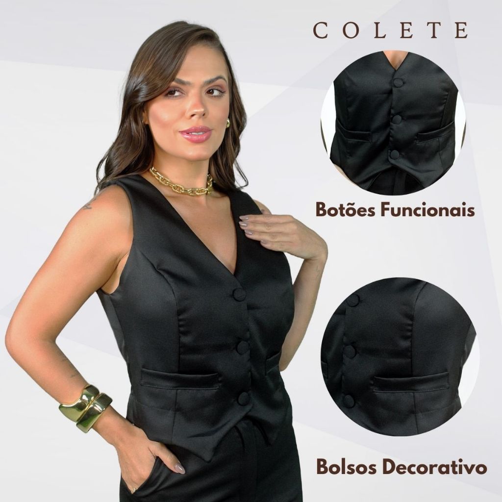 Colete Feminino Alfaiataria Social com Botões Elegante Moderno