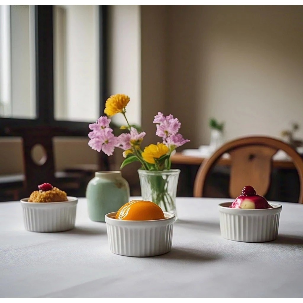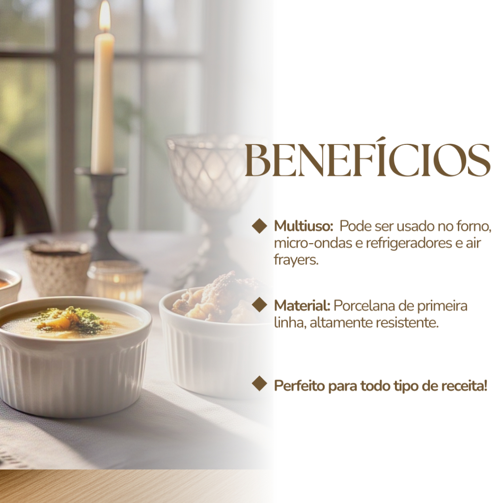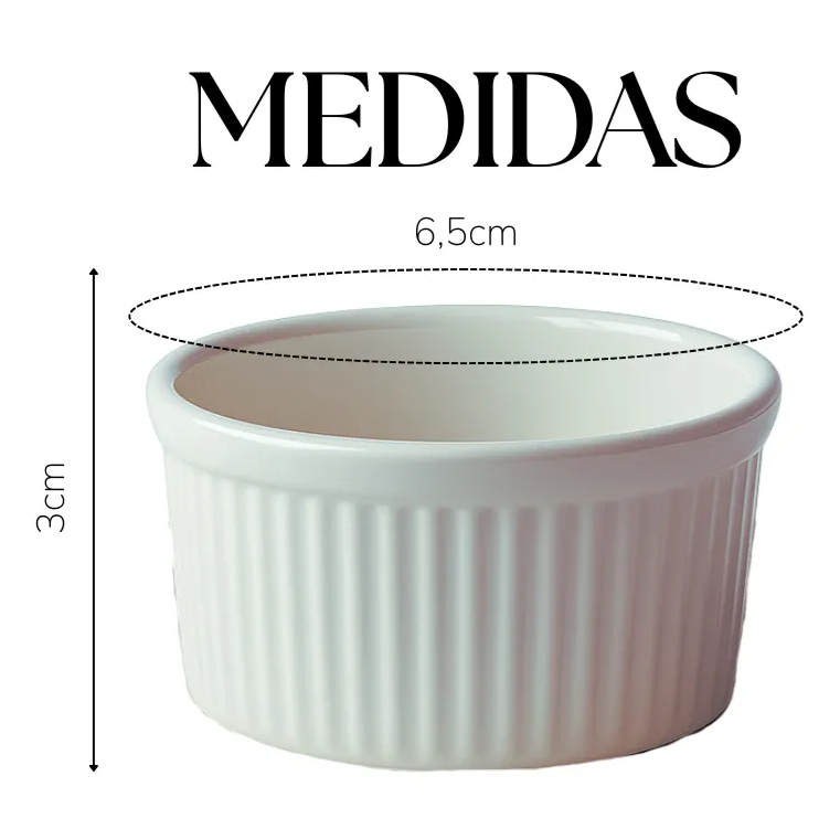 kit 10 Ramekin de porcelana 40ml canelado sobremesas e molhos