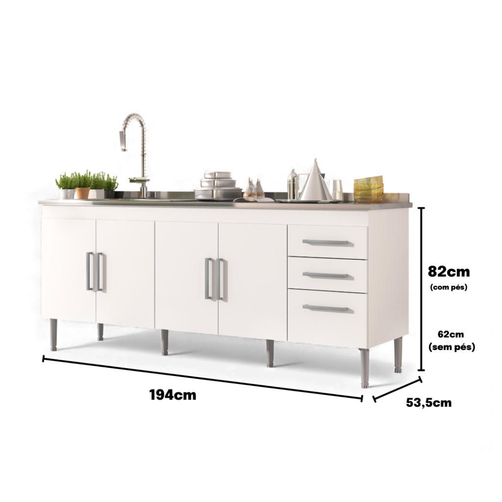 Gabinete De Pia Tonielque Gemeos 2,00m 4 Portas 3 Gavetas com Pés Reguláveis