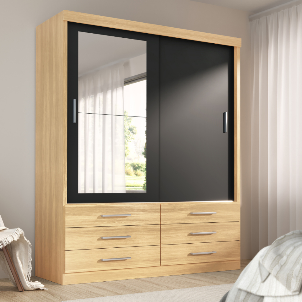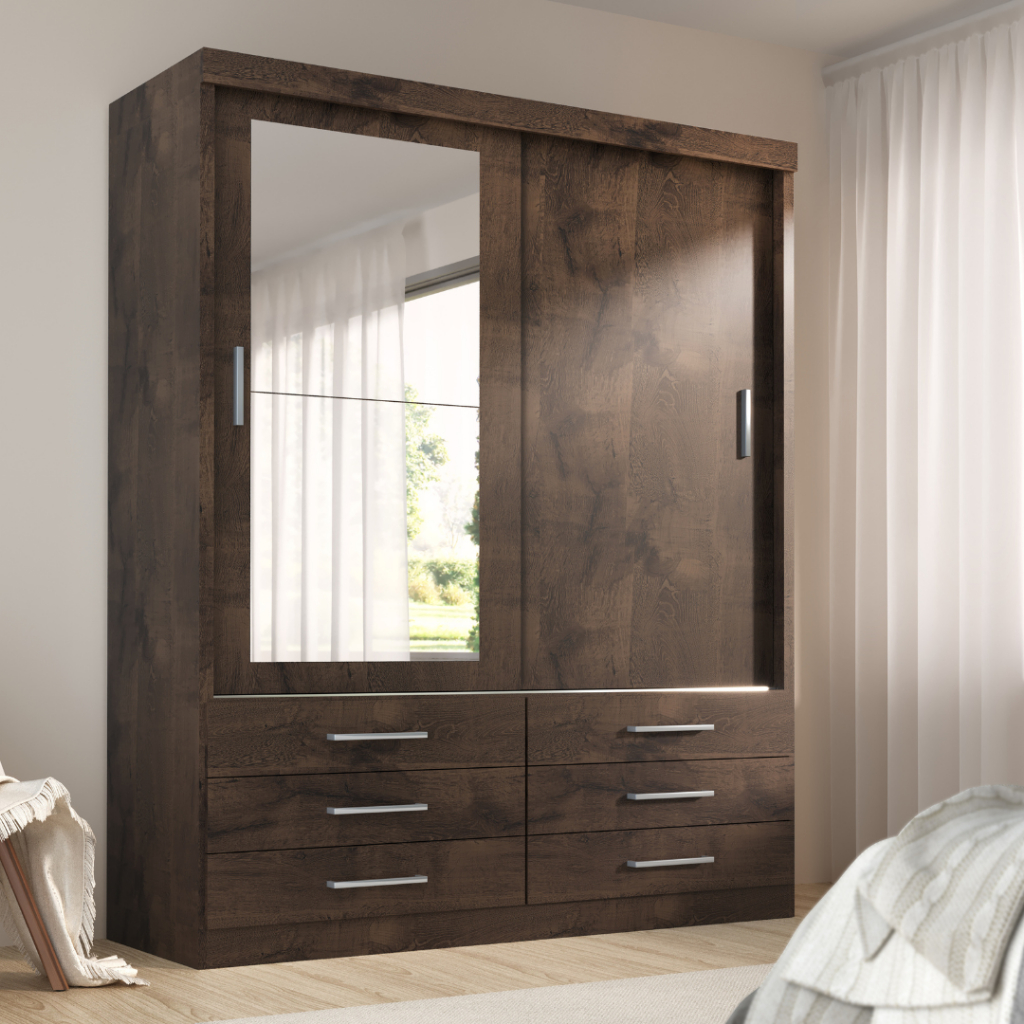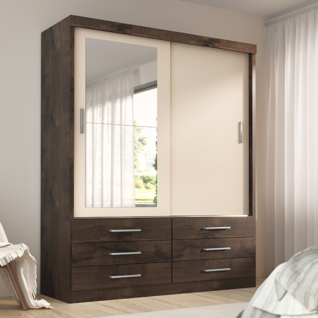 Guarda Roupa Solteiro Capri 2 Portas 6 Gavetas Com Espelho