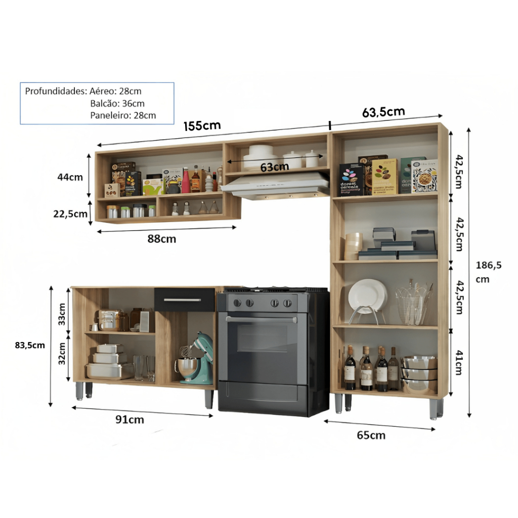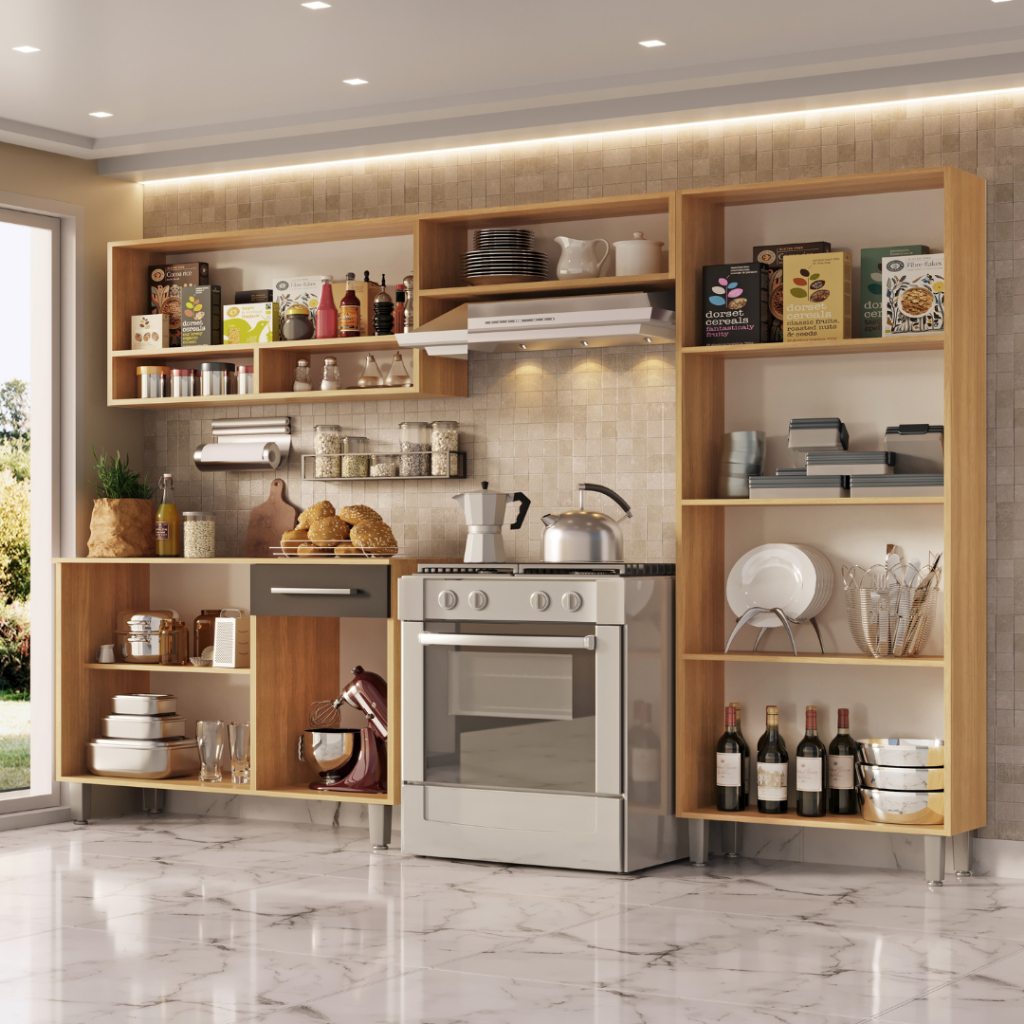 Armário Cozinha Estrela 9 Portas 1 Gaveta Com Balcão