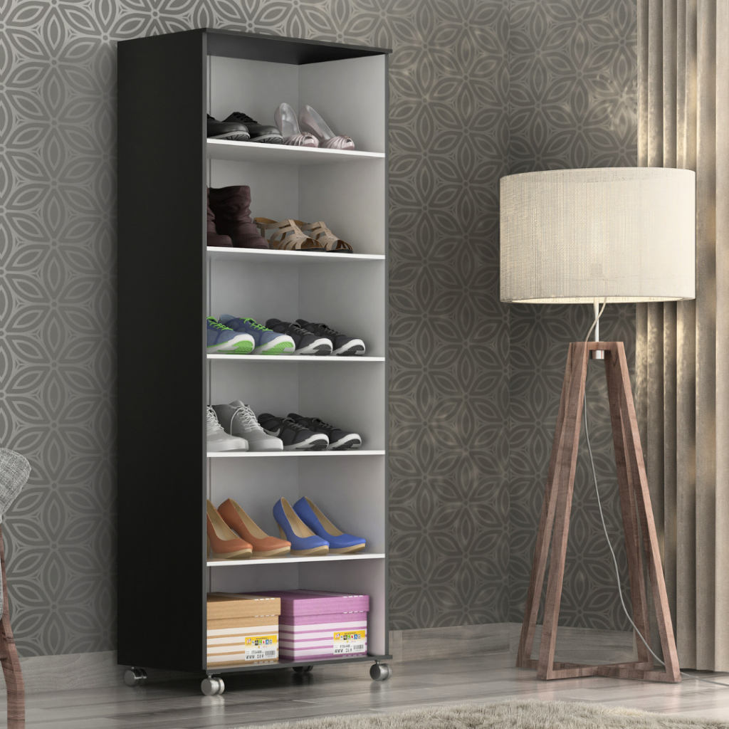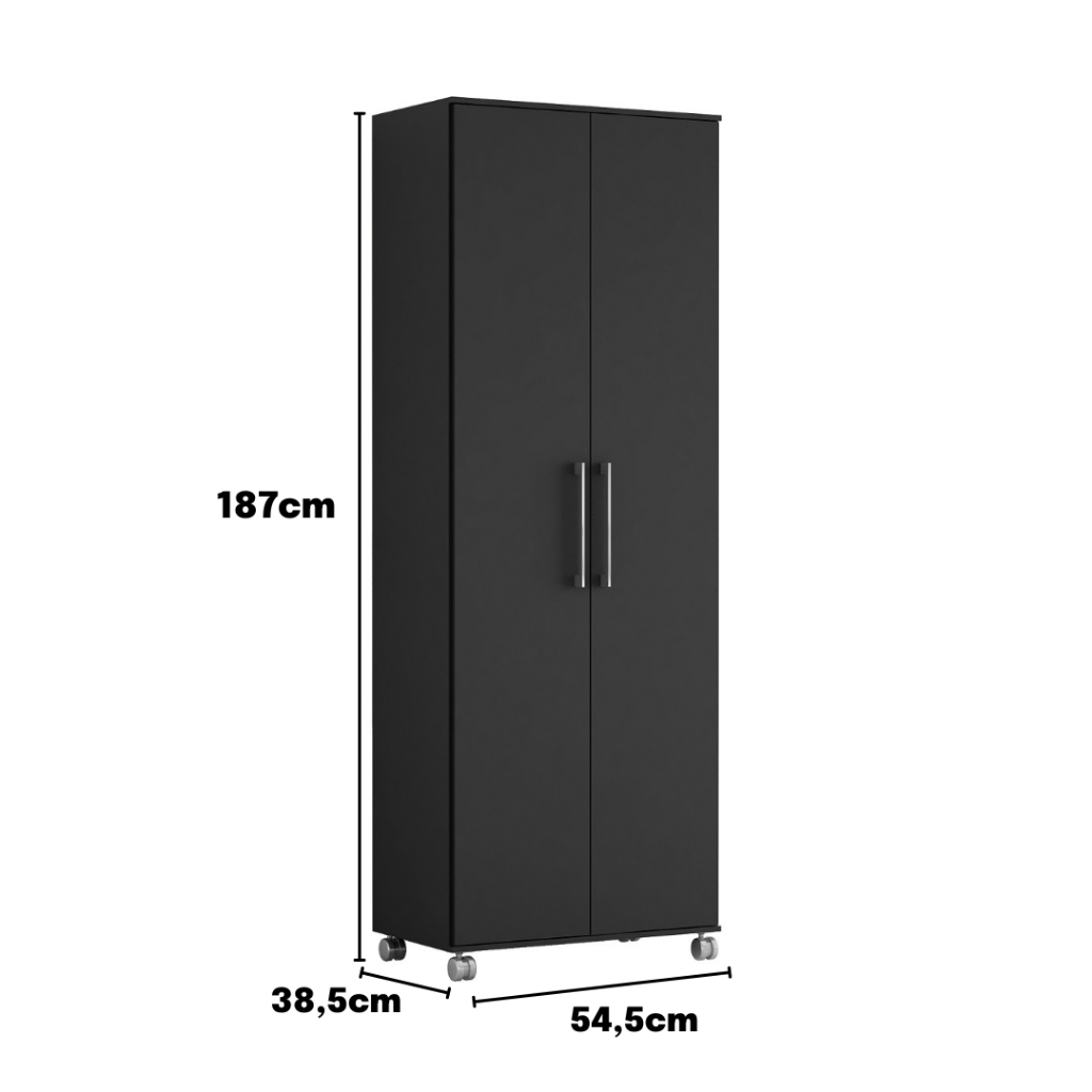 Armário Multiuso Manuela 2 Portas 5 Prateleiras 1,80m Com Rodinhas