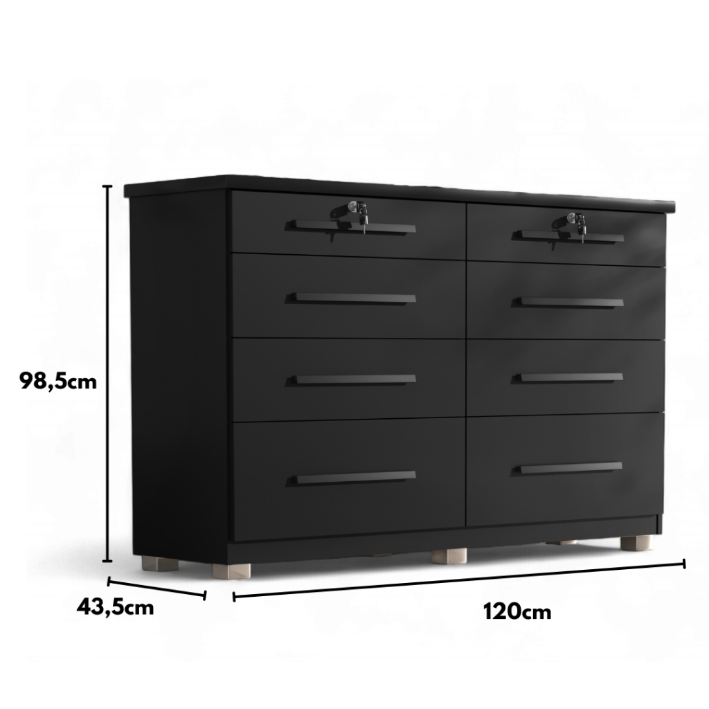 Comoda Monza 8 Gavetas Com Pés