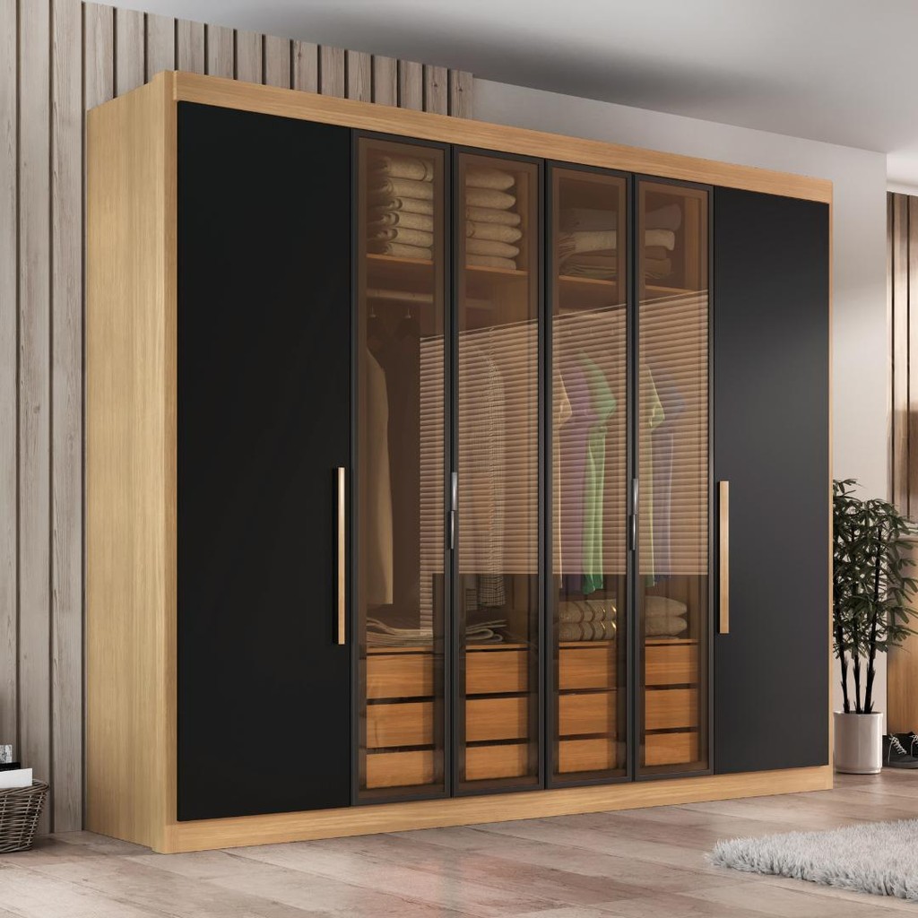 Guarda Roupa Casal Valencia 6 Portas 6 Gav C/ Vidro Reflecta