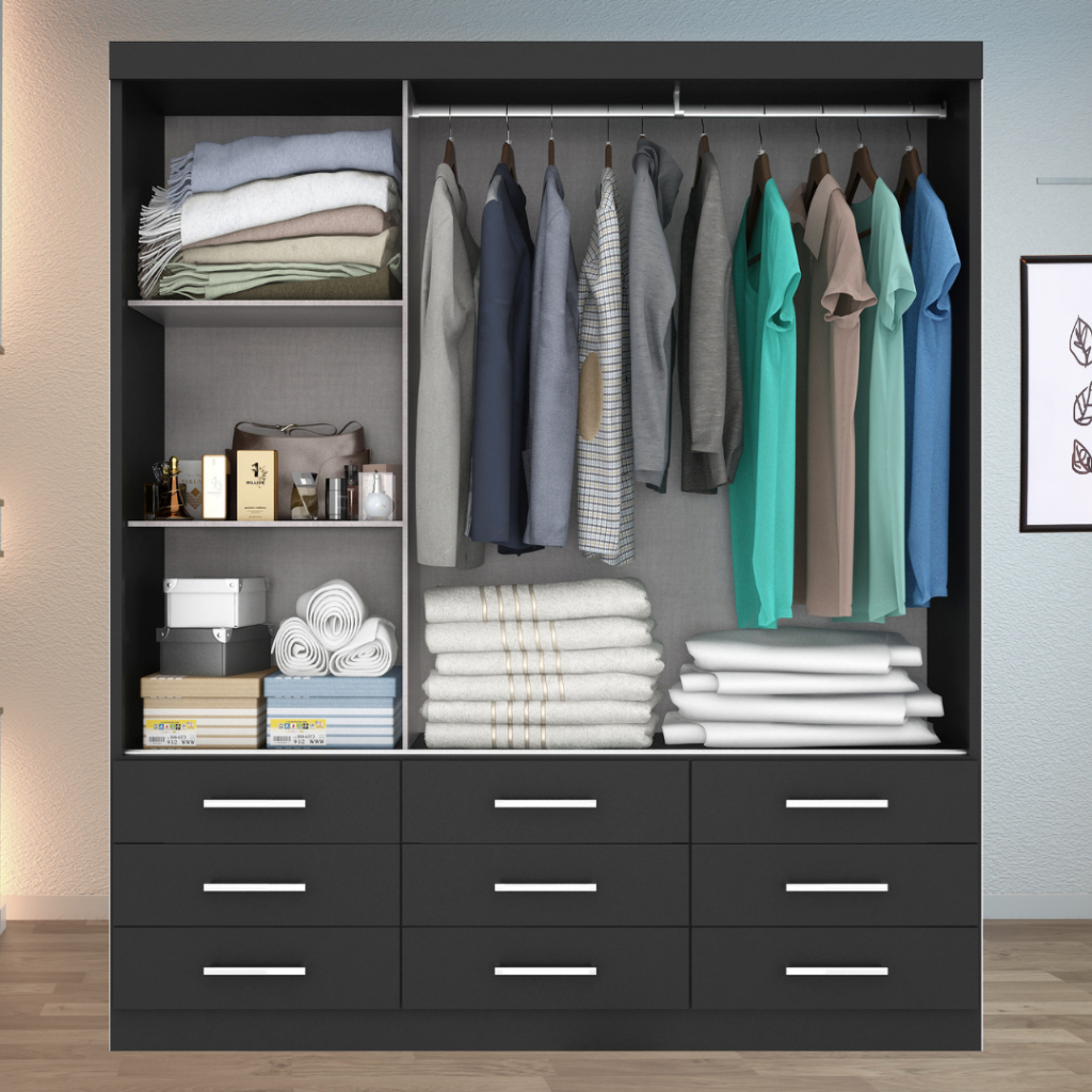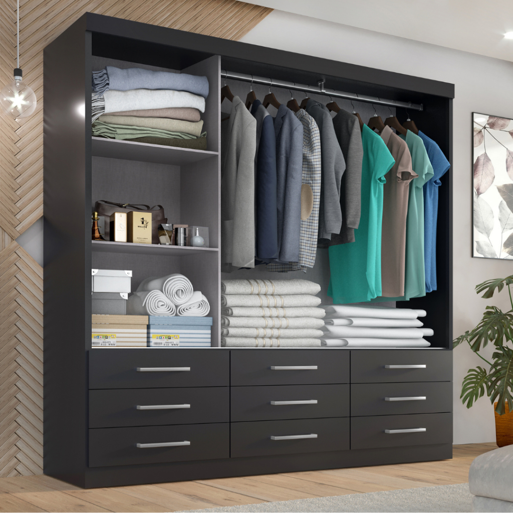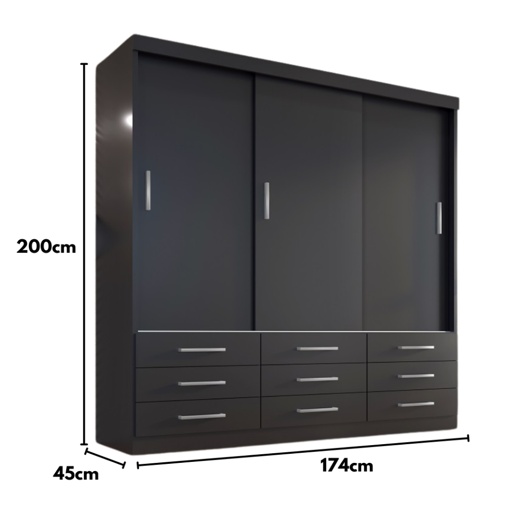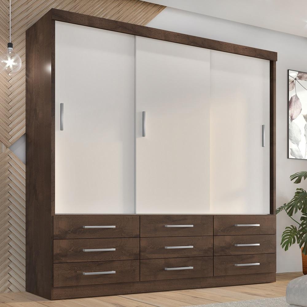 Guarda Roupa Casal Capri 3 Portas Correr 9 Gavetas