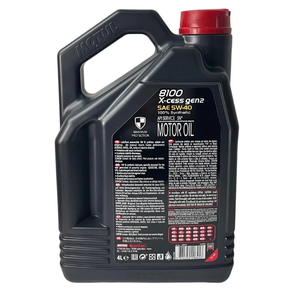 Óleo motor Motul 8100 sintético 5W-40 SINTÉTICO X-CESS GEN2 para carros picapes e suvs (4L)