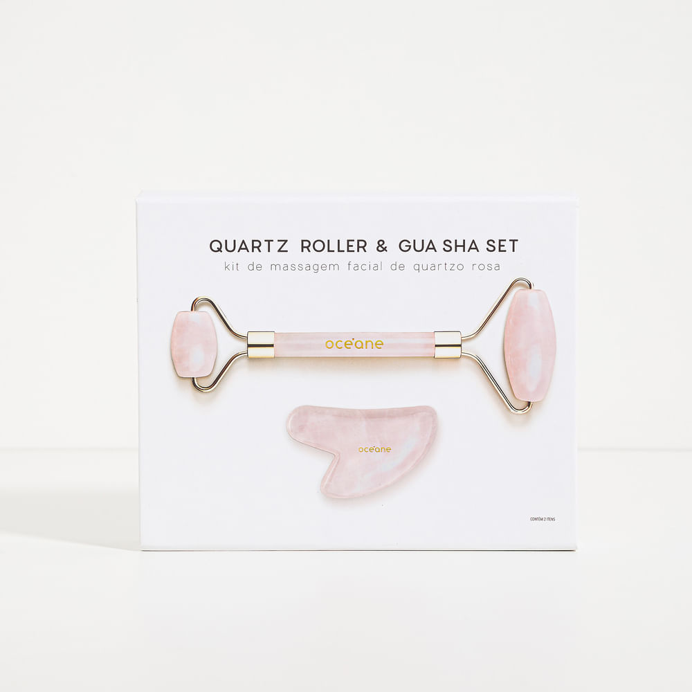 Kit de Massagem Facial de Quartzo Rosa - Quartz Roller & Gua Sha Set