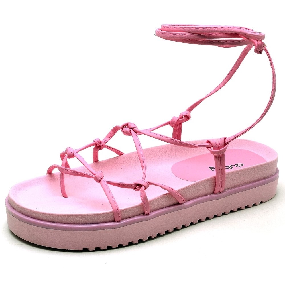 Sandalia Papete Dubuy Feminina Flatform de Amarrar Rosa Khalifa 2041FG