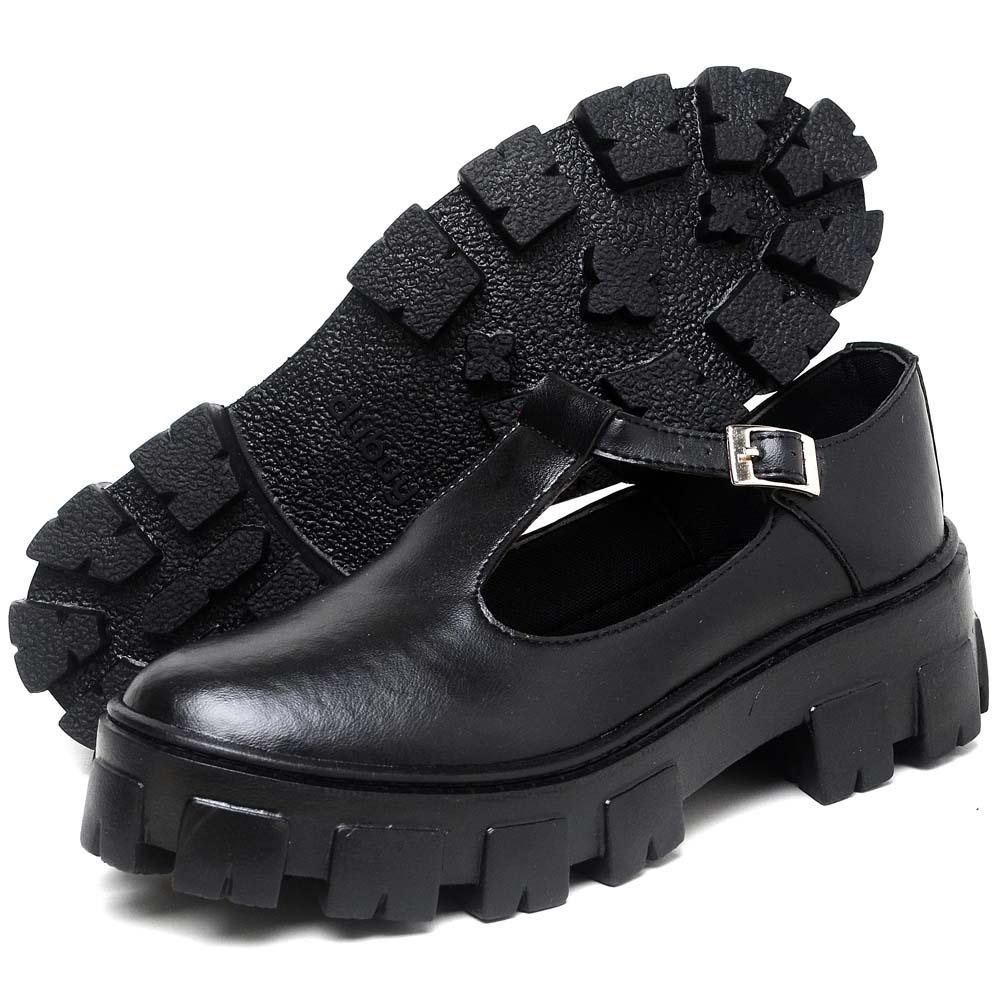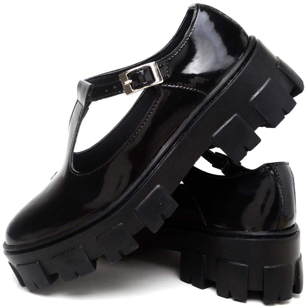 Sapato Mocassim Dubuy Feminino Boneca Preto Verniz Mary Jane 1415FG