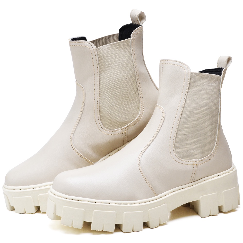 Bota Coturno Dubuy Feminina Tratorada Chelsea Branco Sola Preta Drop 1504FG