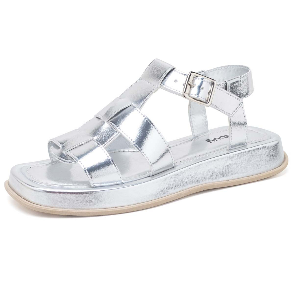 Sandalia Papete Dubuy Feminina Prata Metalizado Dora 2056FG