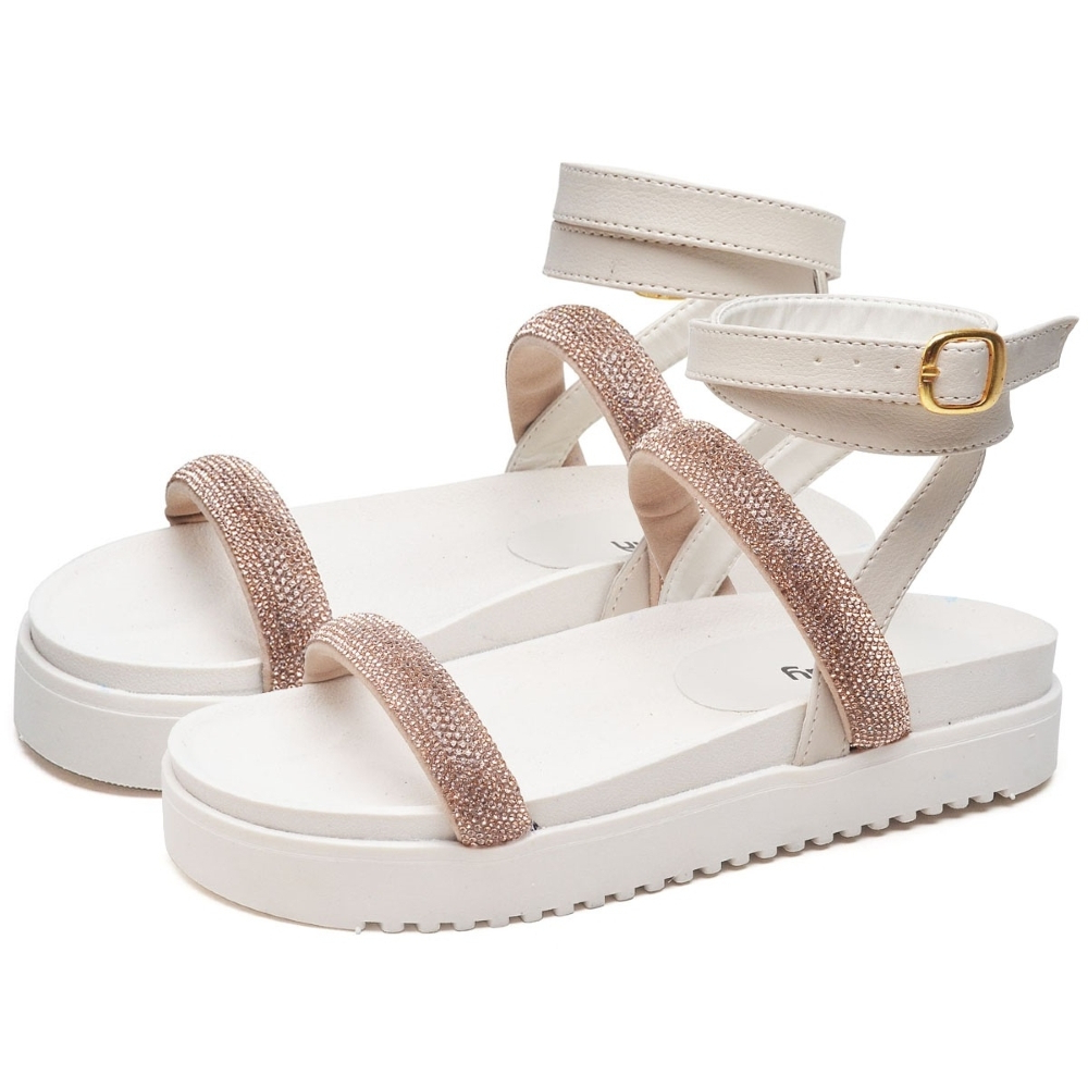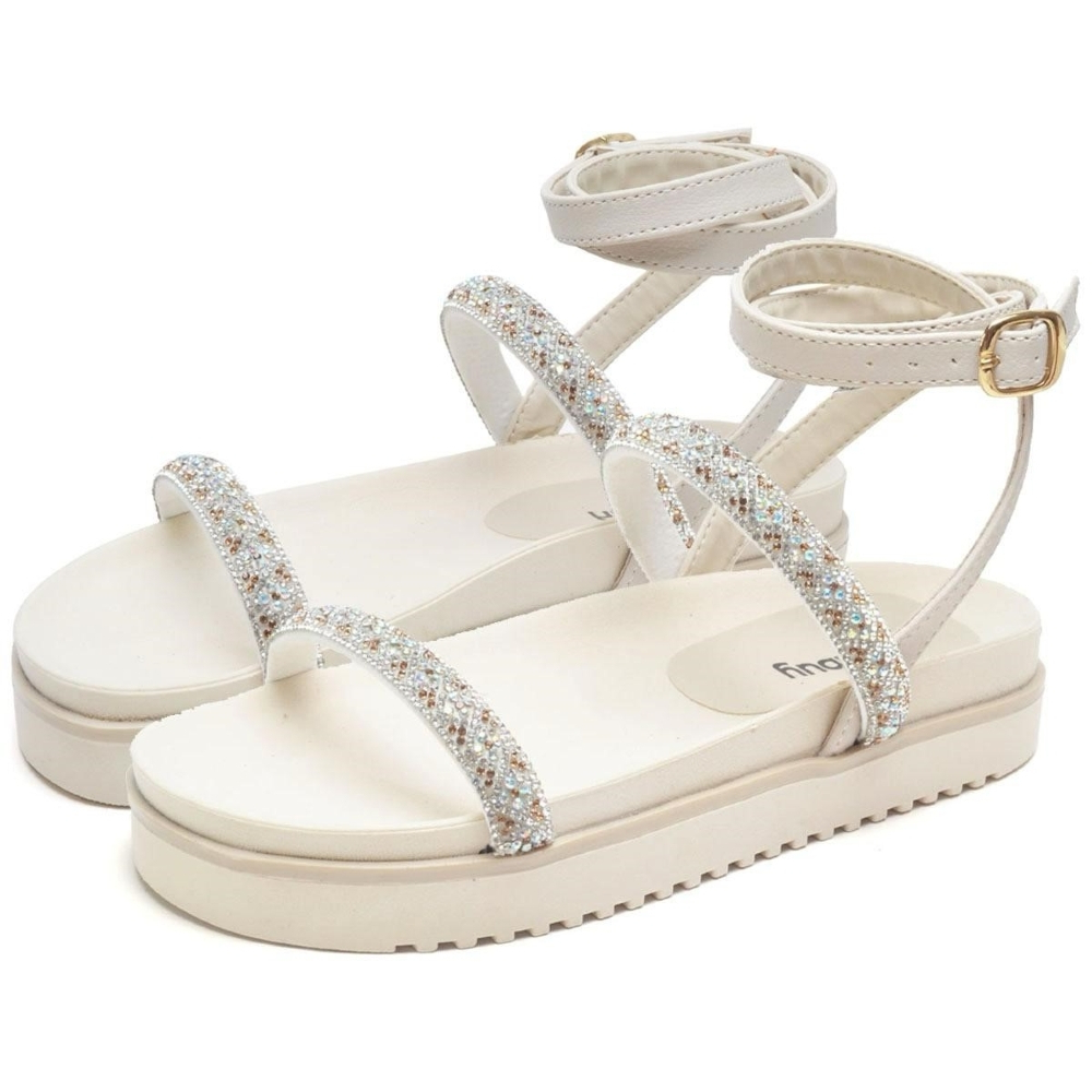 Sandalia Rasteirinha Dubuy Feminina Glitter Off White Jade 2059FG