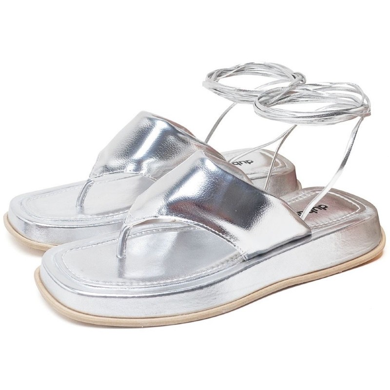 Sandalia Plataforma Dubuy Feminina Amarração Feminina Prata Metalizada Bari 2049FG