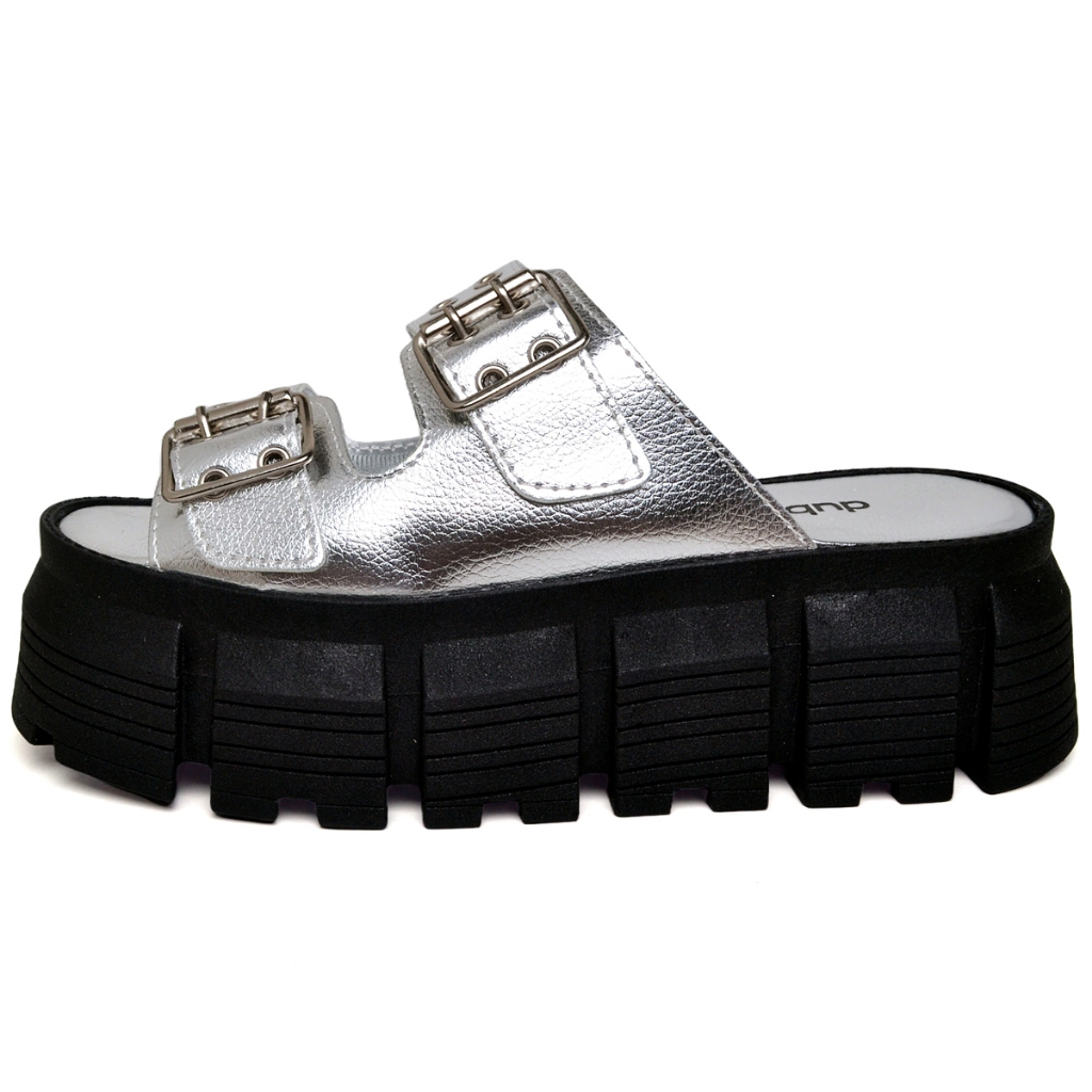 Papete Feminina Tratorada Fivela Prata Sandália Preto Original Dubuy Doja 2072DB