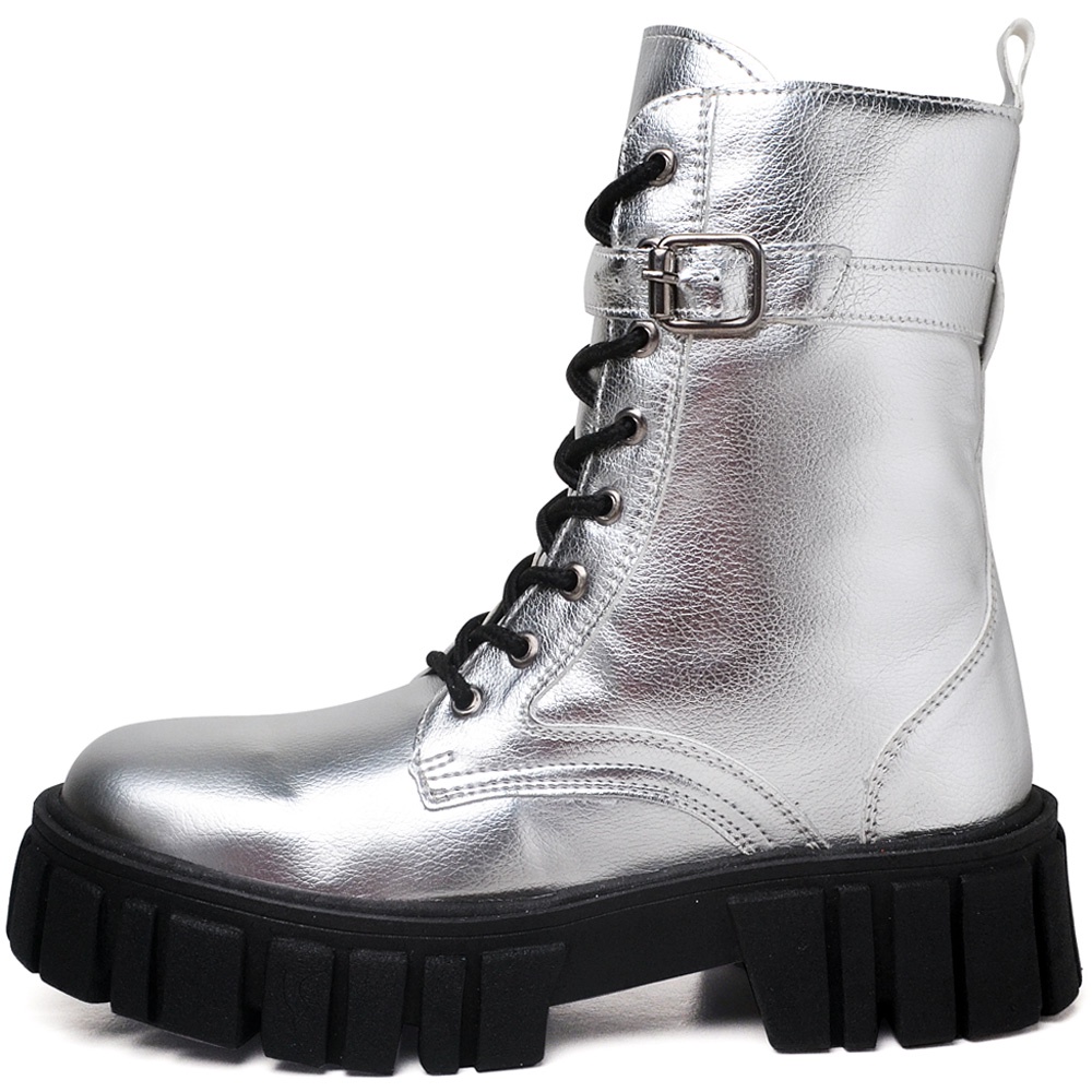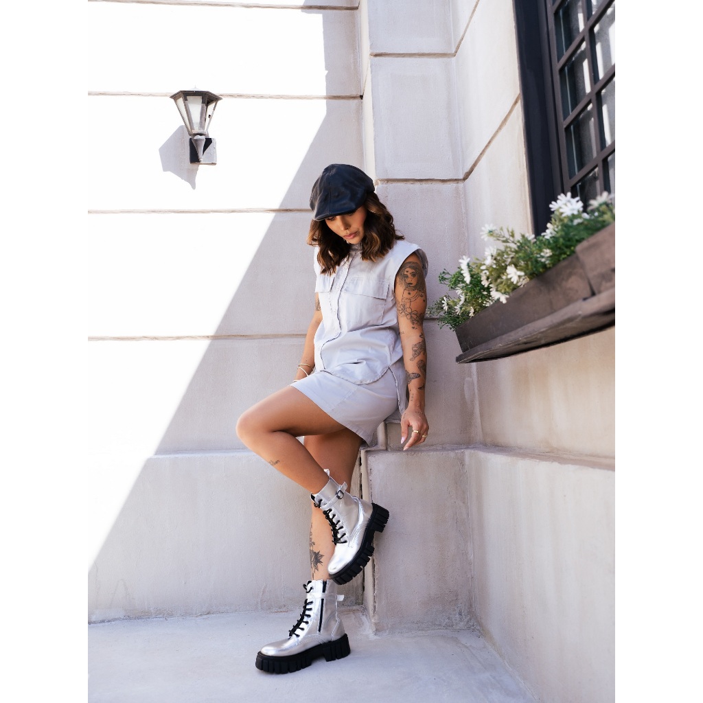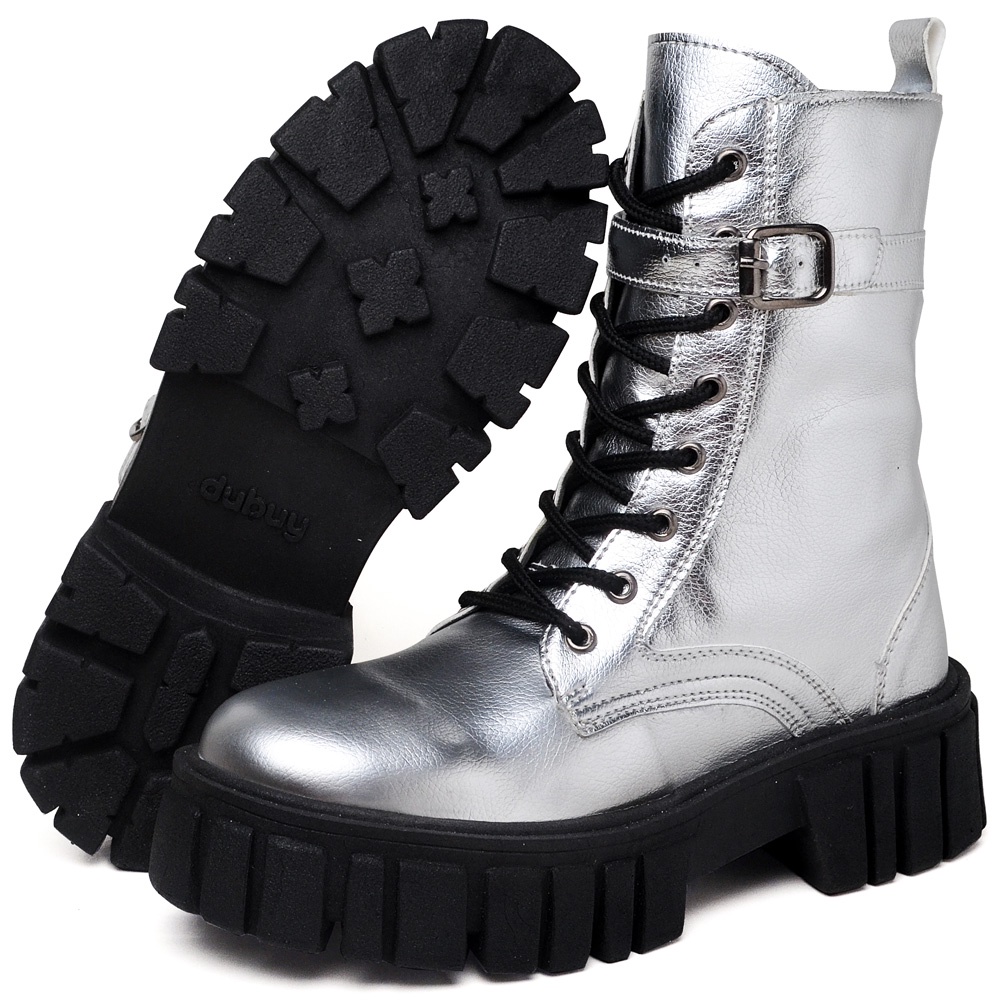 Bota Coturno Dubuy Feminina Prata Metalizado Detalhe Removivel Lolla 1201FG