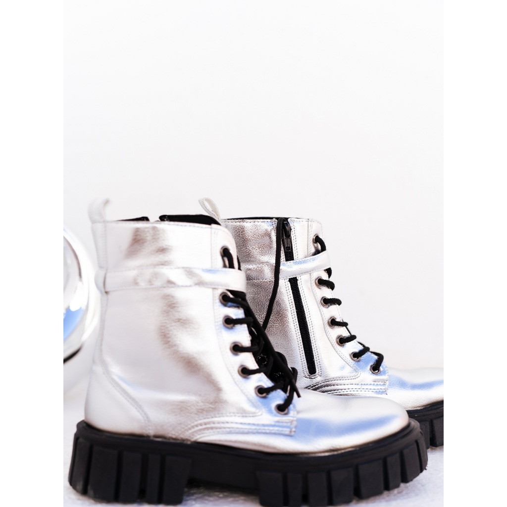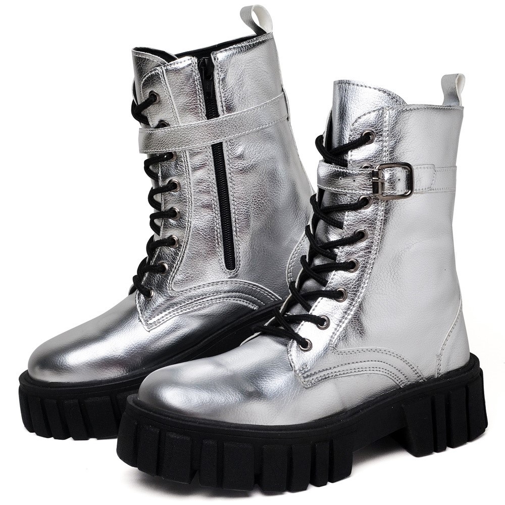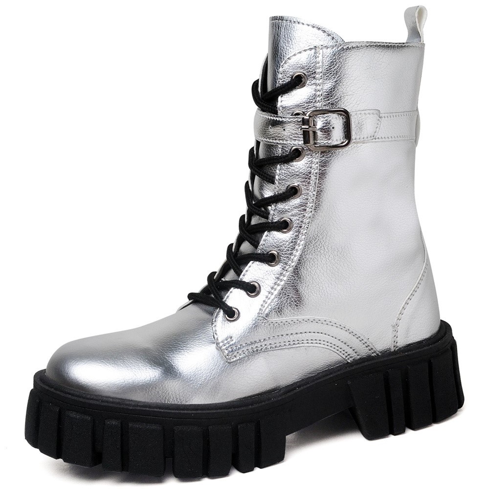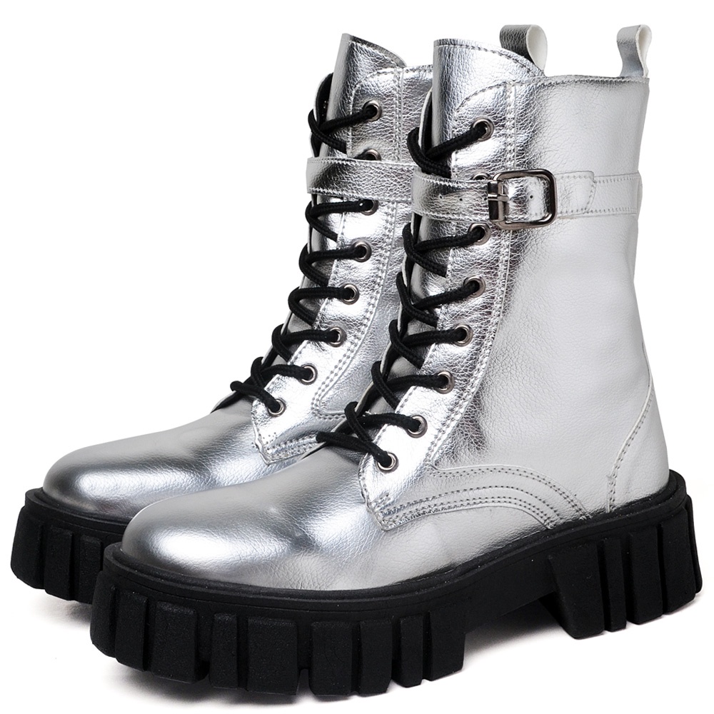 Bota Coturno Dubuy Feminina Prata Metalizado Detalhe Removivel Lolla 1201FG