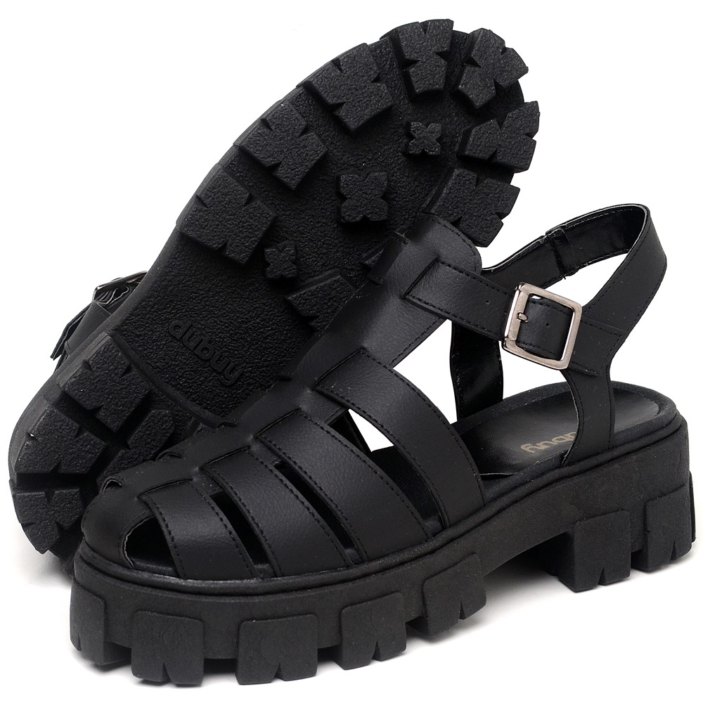 Sandalia Tratorada Dubuy Feminina Preto Fisherman 1601FG