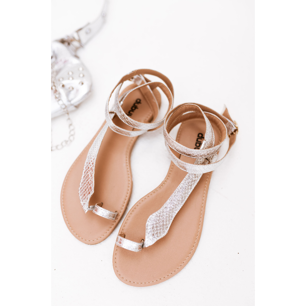 Sandalia Rasteirinha Dubuy Feminina Cobra Prata Naja 2033FG