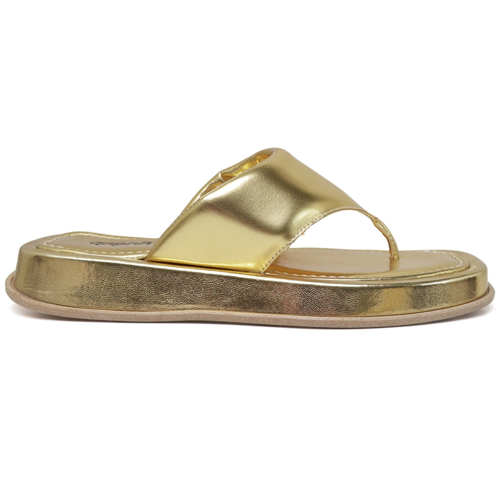 Sandalia Plataforma Dubuy Feminina Amarração Feminina Dourada Metalizada Bari 2049FG