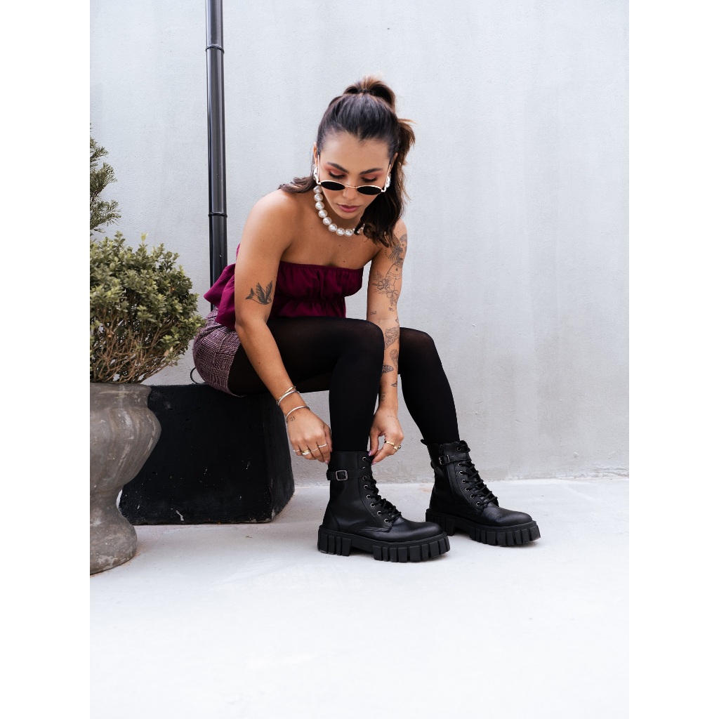 Bota Coturno Dubuy Feminina Sola Tratorada Fivela Lateral Preto Lolla 1201FG