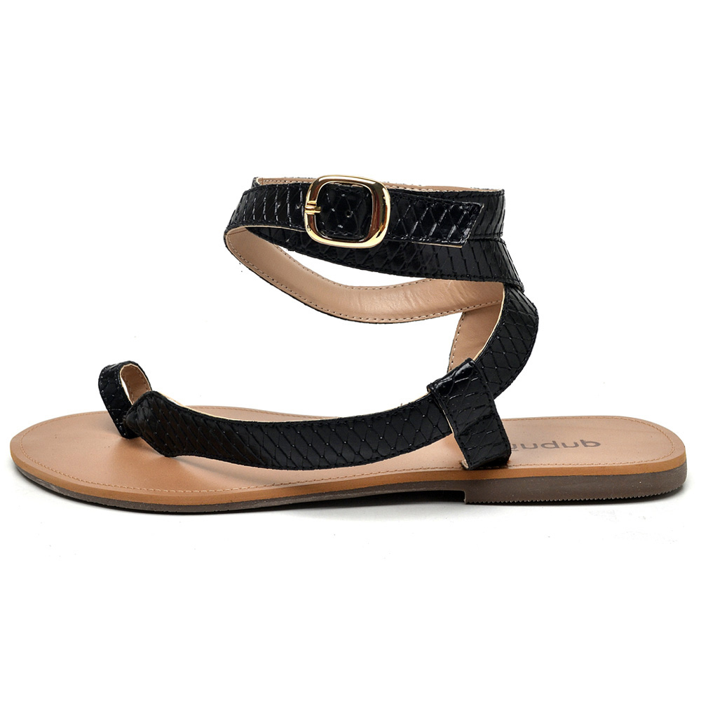 Sandalia Rasteirinha Dubuy Feminina Cobra Preta Naja 2033FG