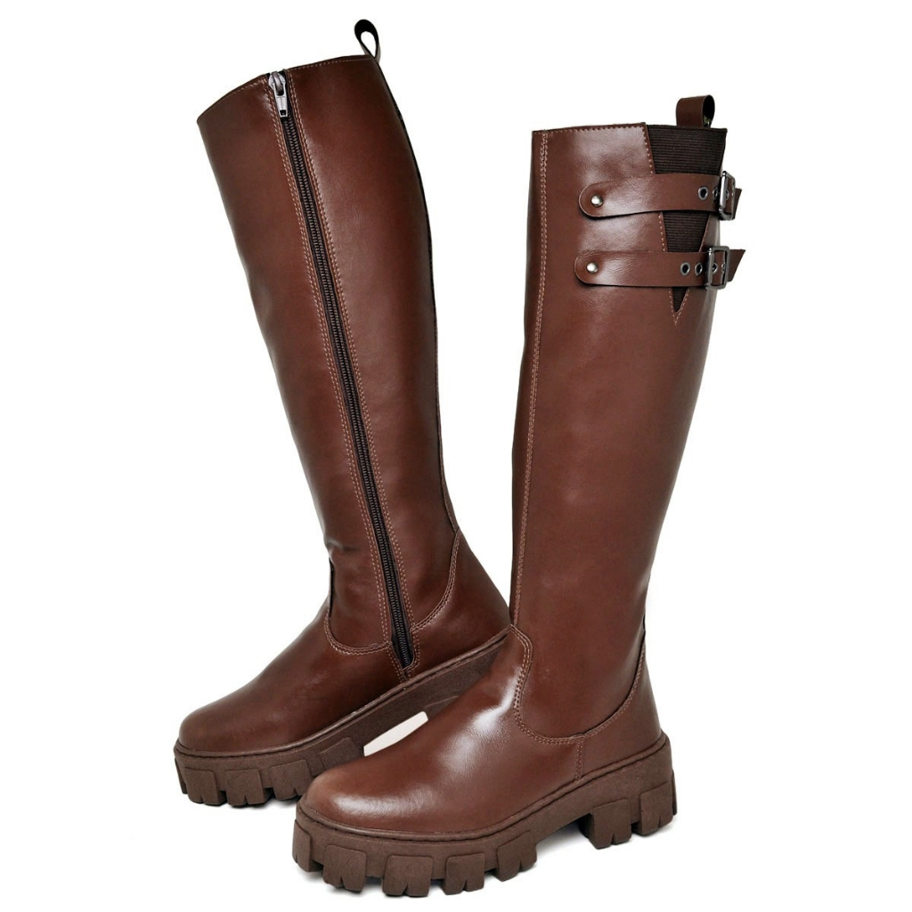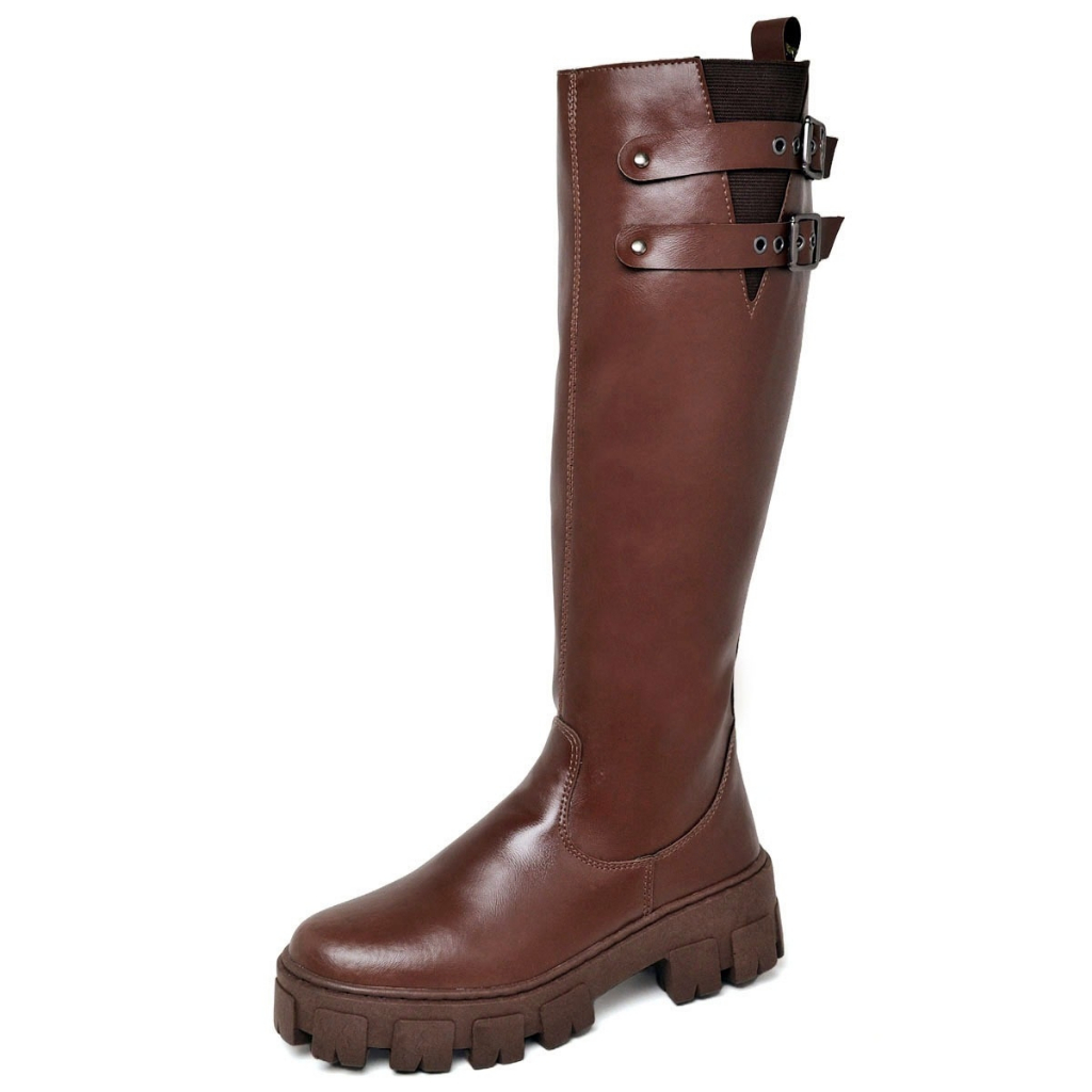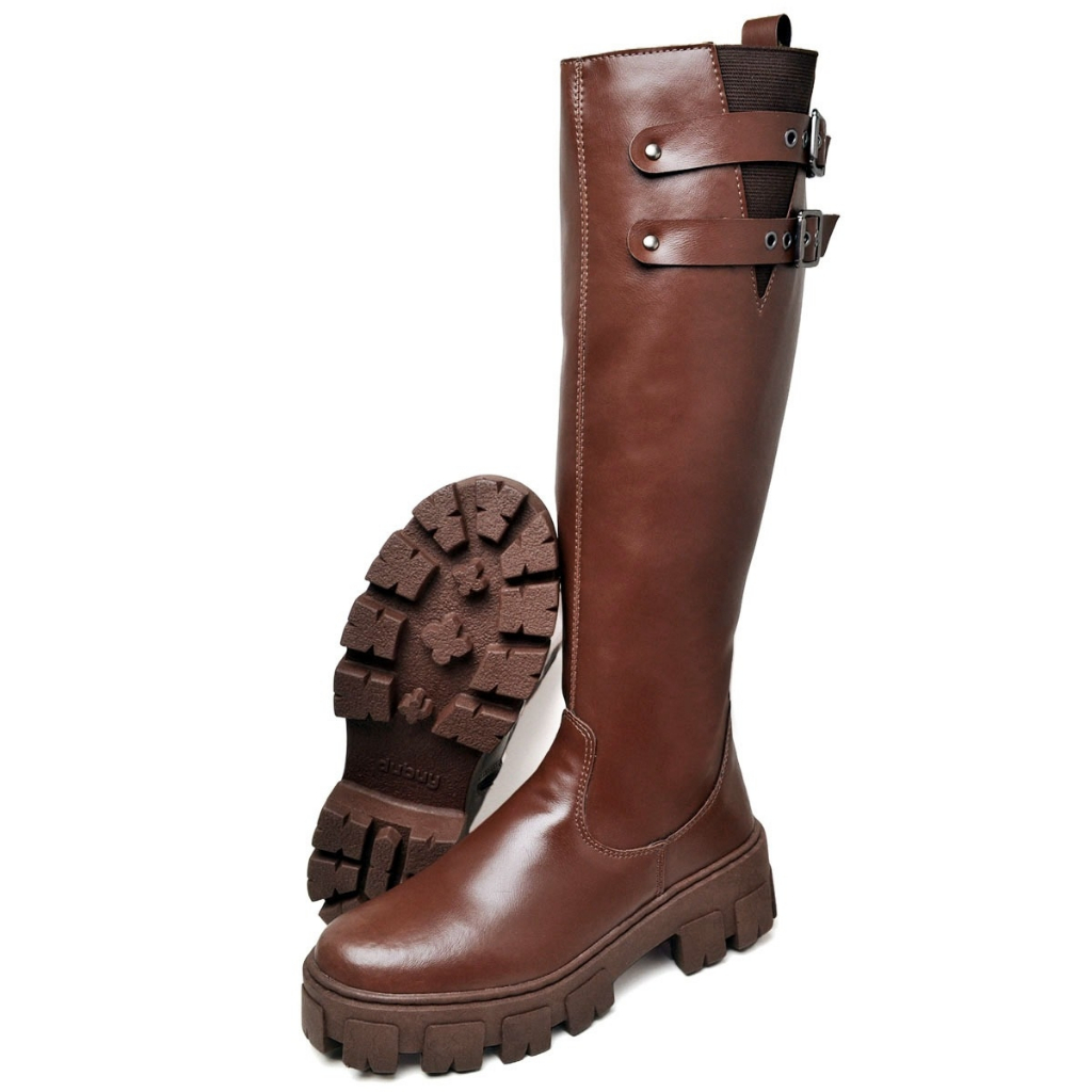 Bota Cano Alto Dubuy Feminina Marrom Com Fívela ROMA Original 1814FG