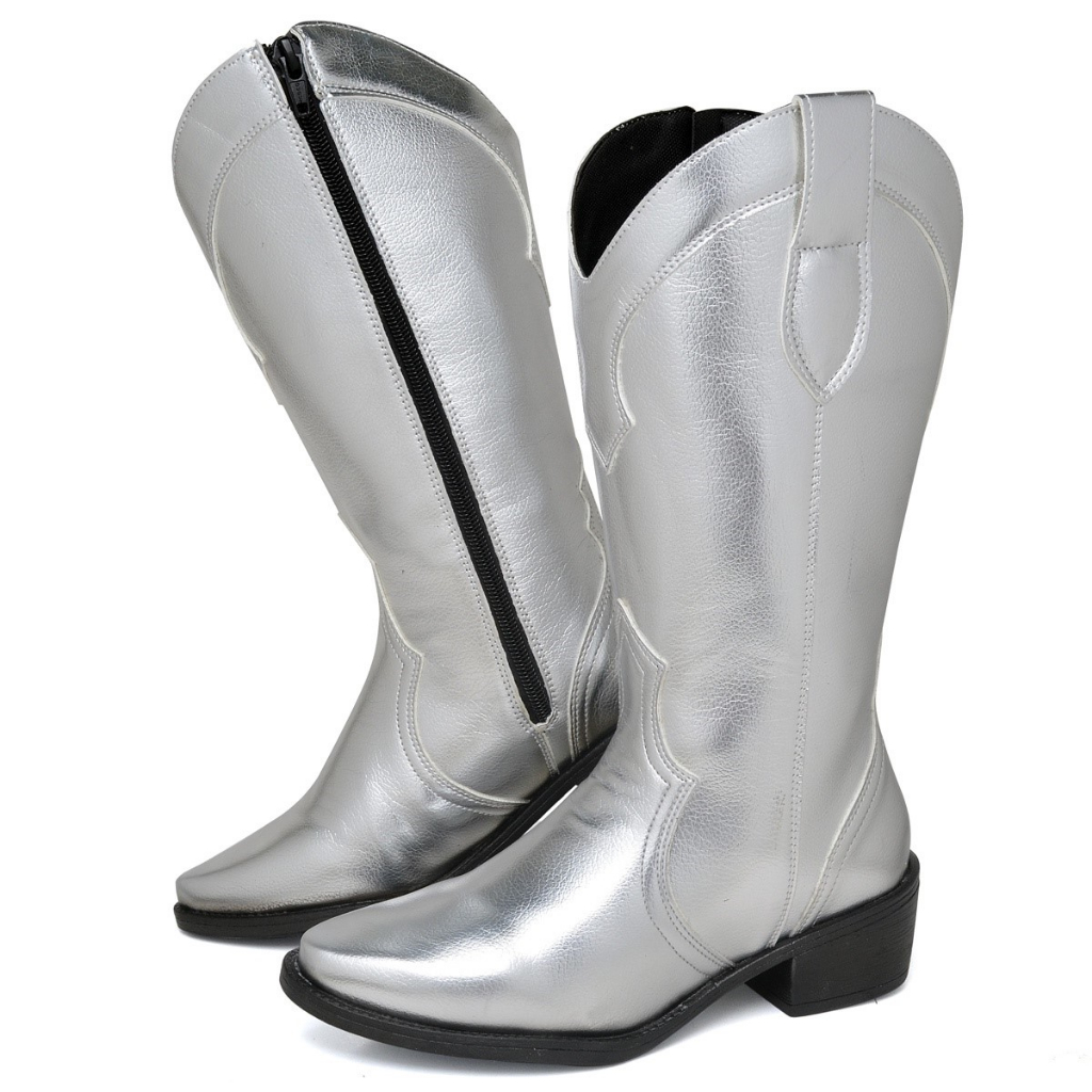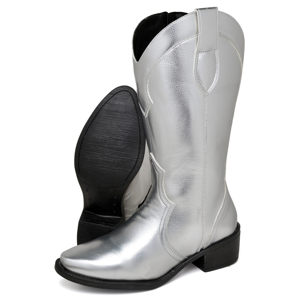 Bota Country Dubuy Feminina Western Cano Medio Prata Metalizado 1703FG