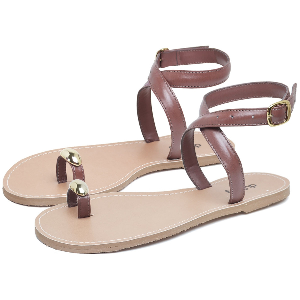 Sandália Rasteira Feminina Branca Detalhes Dourado Dubuy Mia 2034DB