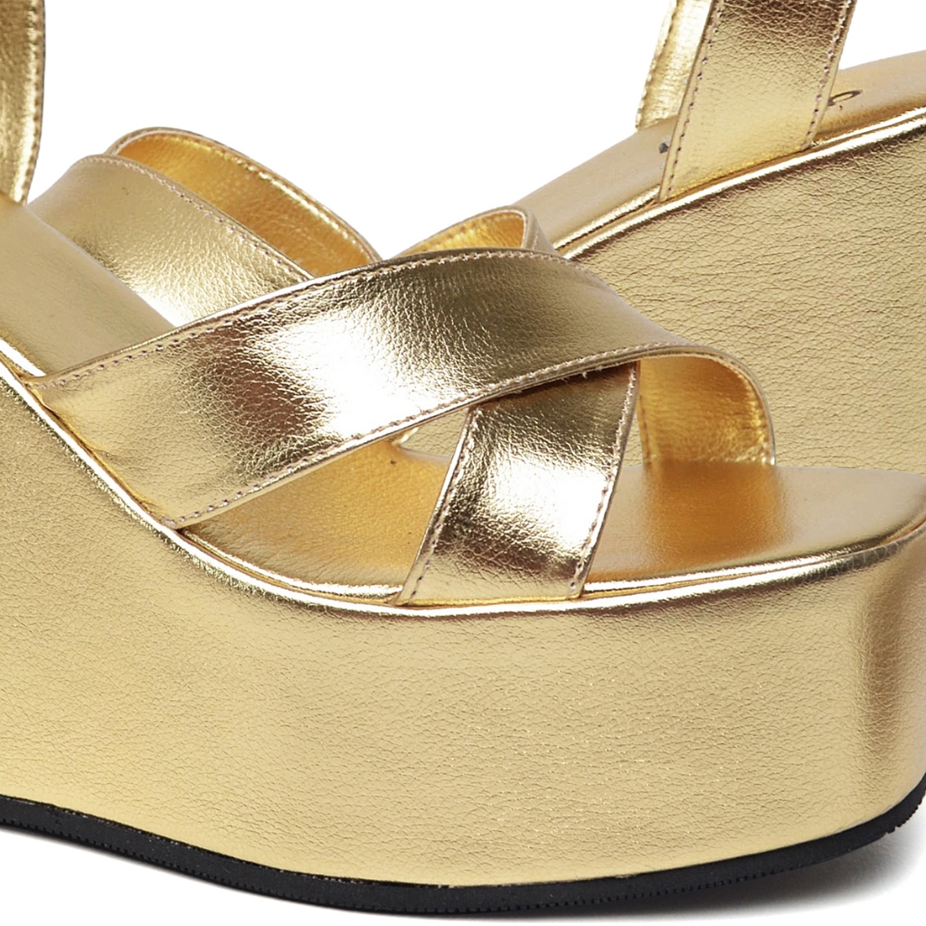 Tamanco Sandália Feminina Plataforma Dourado Alicia Dubuy 2112DB