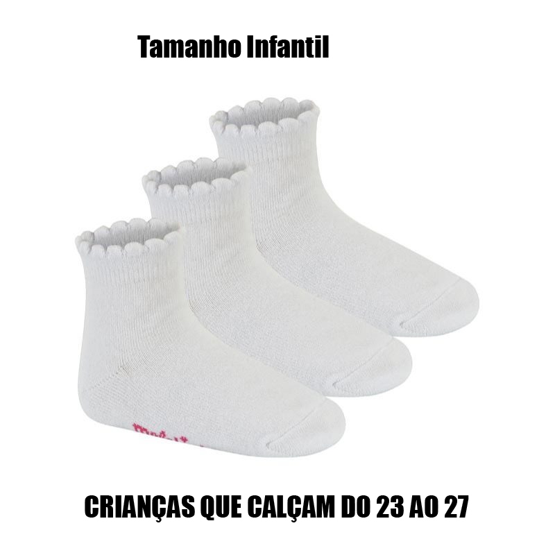 Kit 3 pares Meia Molekinha Original com NF 75% Algodão Cano Médio Baby ou Infantil