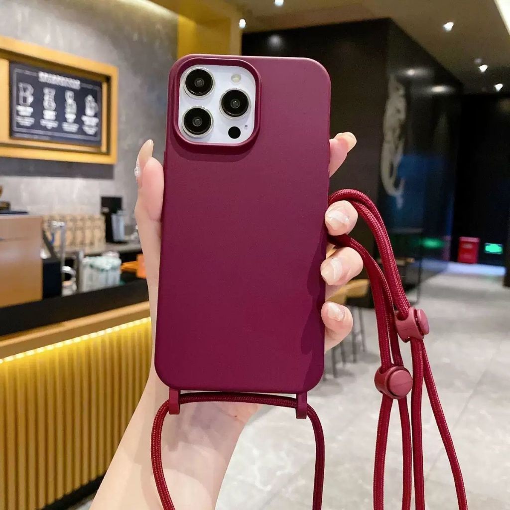 Capa Capinha Silicone Luxo Com Cordão Alça Para Iphone 17 16 15 14 13 Pro Max Air Case Elegante Premium