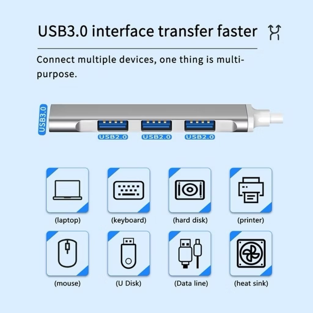 Hub Usb e Type-c 3.0 4 Portas 5 Gbps Super Rapido Mouse Teclado Hd