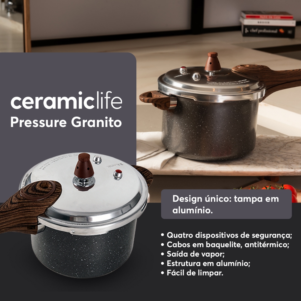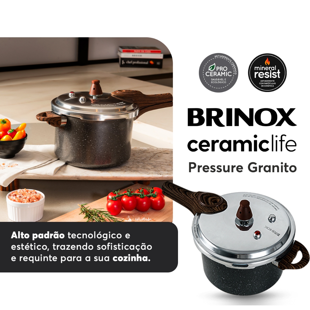 Panela de Pressão Brinox Ceramic Life Pressure Com Indução 4,2L 20cm Cor Granito